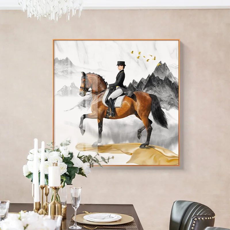 Настенная картина в современном стиле с изображением черного рыцаря и лошади, холст с золотым эффектом, настенные картины для гостиной, уникальный холст с масляными красками