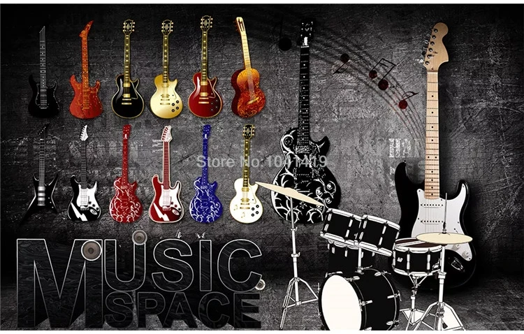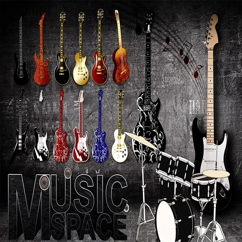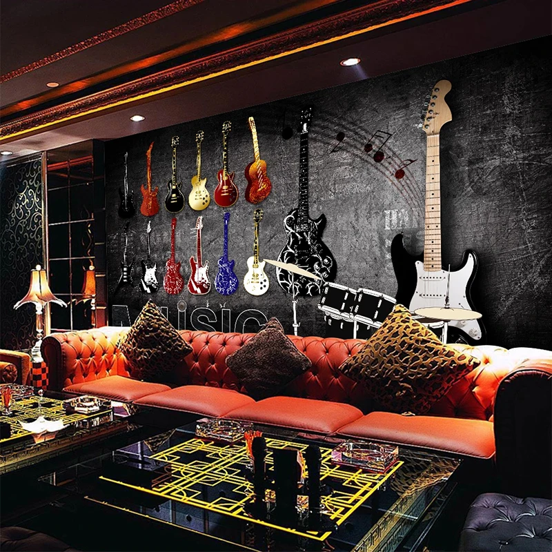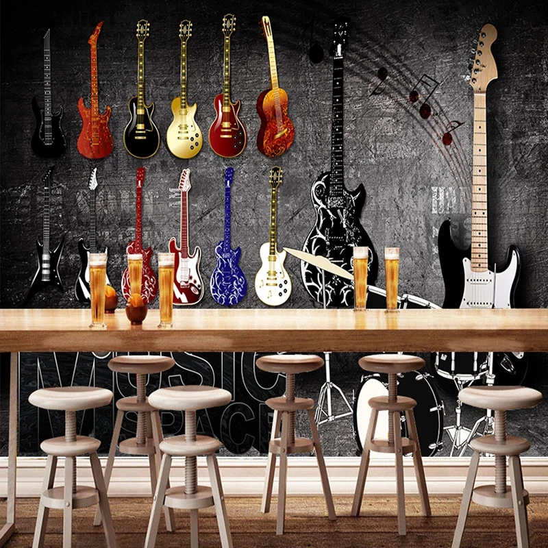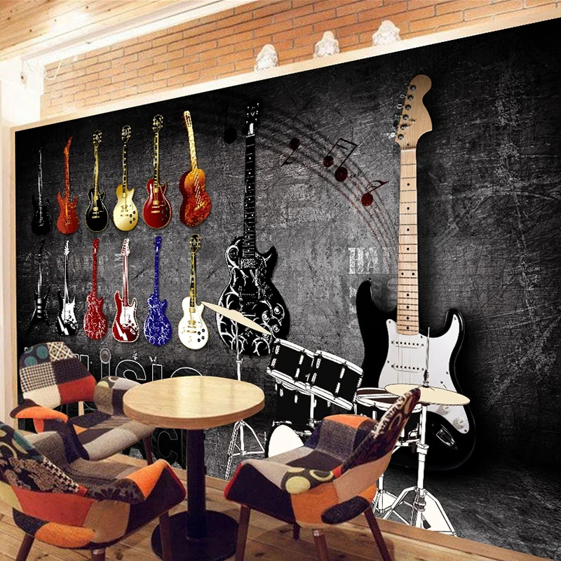 3D настенная бумага в стиле ретро, рок-музыка, гитара, кирпичные настенные росписи для ресторана, кафе, KTV, бара, клубов, фоновая настенная бумага для стен, 3D обои