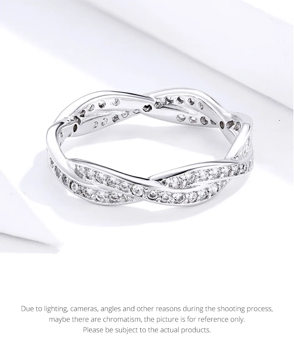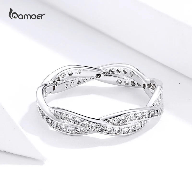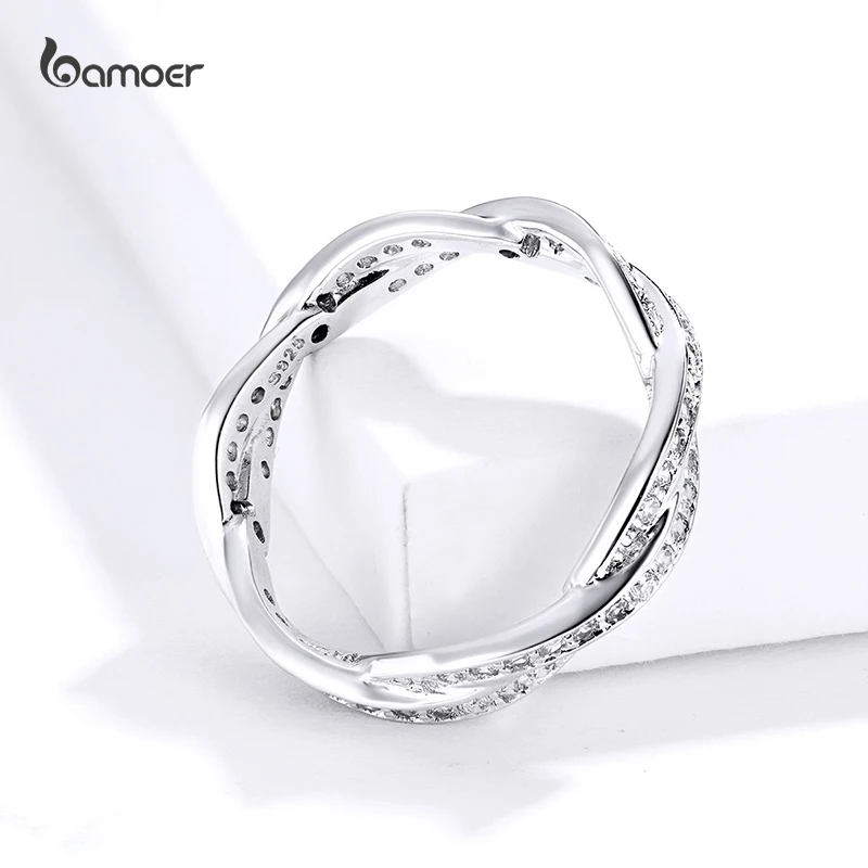Bamoer, хит продаж, классическое медное минималистичное волнистое кольцо для женщин, блестящее циркониевое элегантное торжественное обручальное свадебное ювелирное изделие, подарок