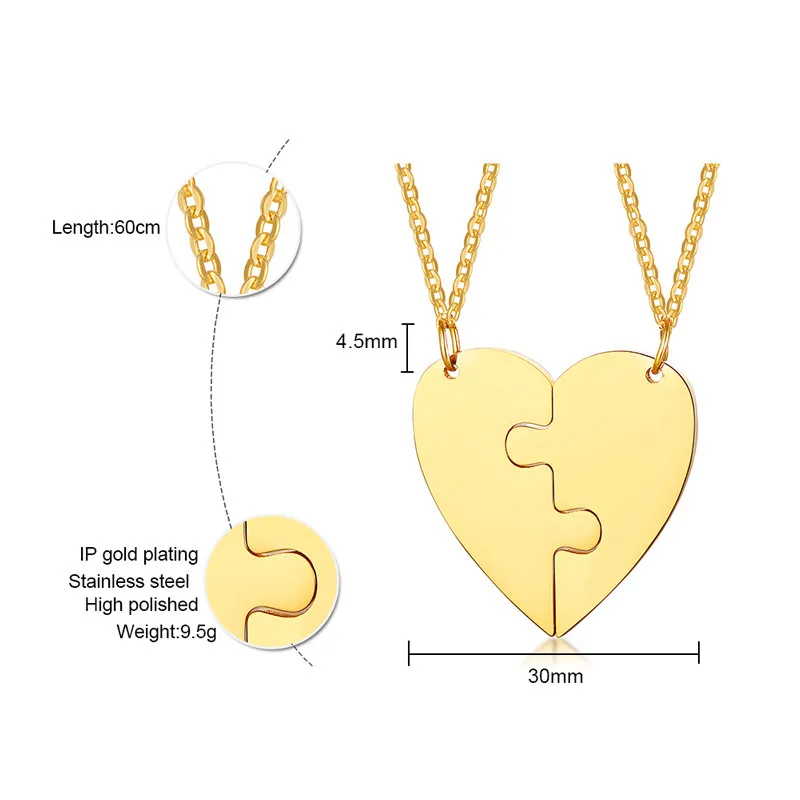 Ожерелье с подвеской в виде сердца из нержавеющей стали золотого цвета