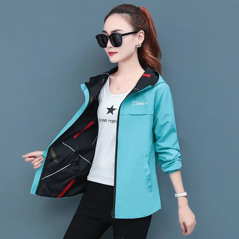 Женские куртки весна осень куртка с капюшоном двухсторонняя одежда ...
