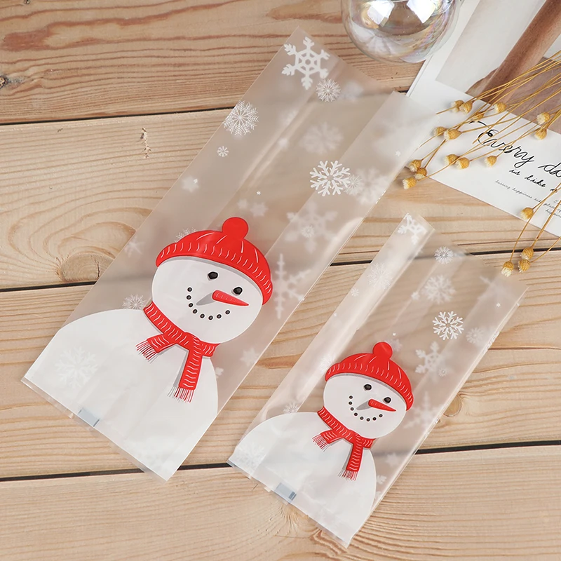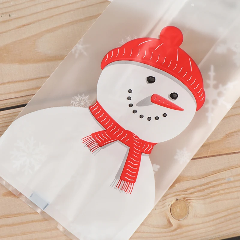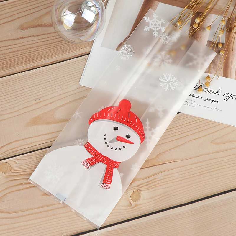 50 шт.лот рождественские пакеты для упаковки выпечки, мультяшный Рождественский мешок для конфет с Санта Клаусом, снеговиком, мешок для хранения печенья и конфет