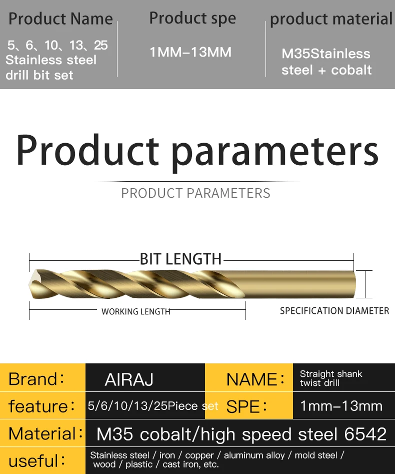 Многофункциональное сверло AIRAJ для алмазов, нержавеющей стали, дерева, алюминия, чугуна, пластика