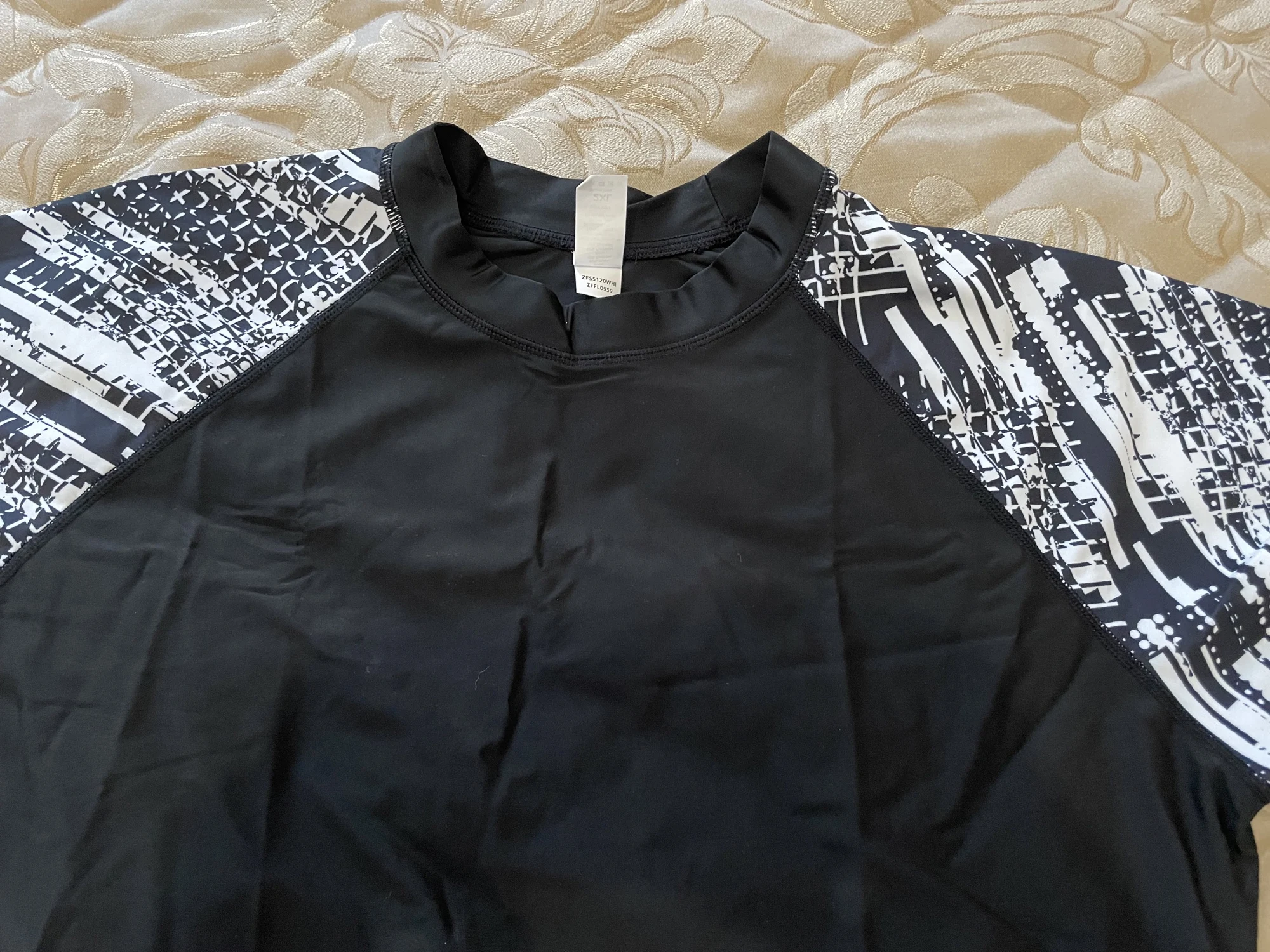 Хорошая футболка для занятий снорклингом. Тоненькая, сшита аккуратно. На 2XL на ОГ 114 см и рост 180 см села отлично, не впритык. Цвет выбрала черный с белой полоской, чтобы больше было похоже на ядовитую змею :) ( без шуток).