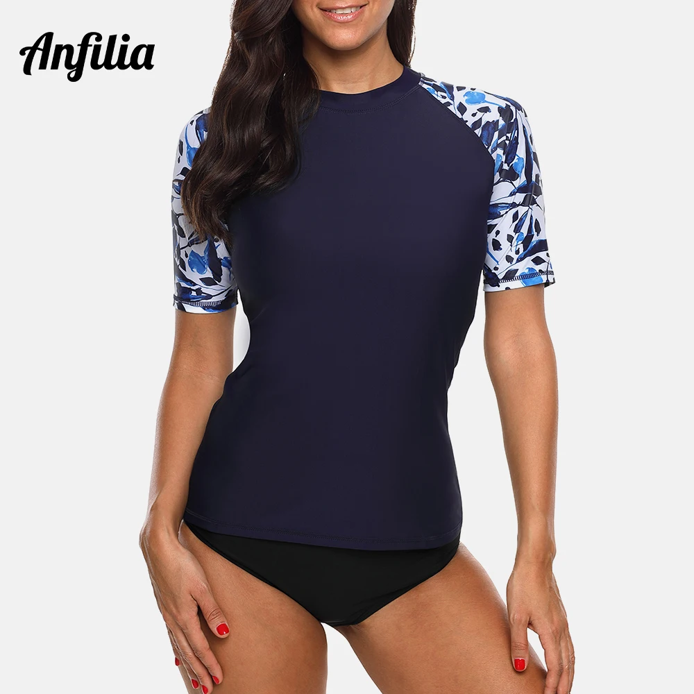 Женский купальник Anfilia UPF50 +, с коротким рукавом, с цветочным принтом
