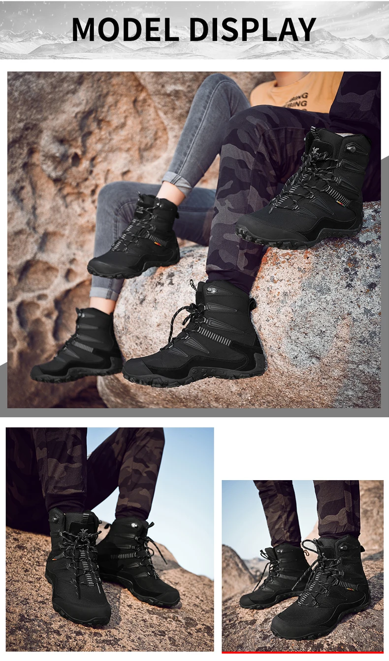 Походная обувь для мужчин и женщин, водонепроницаемые высокие тактические ботинки с плюшевой подкладкой, для восхождения и горного туризма, уличные спортивные кроссовки