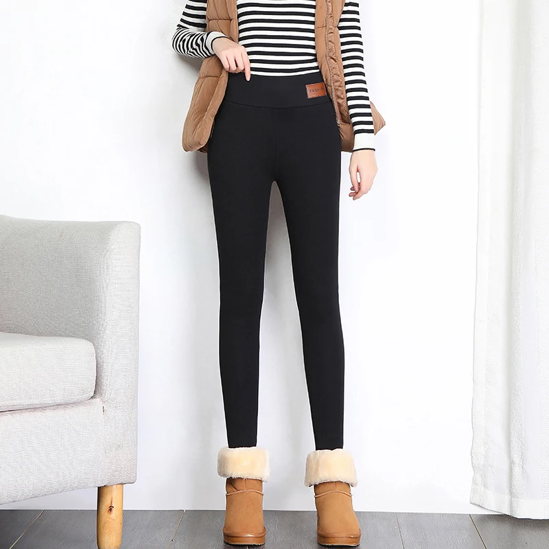 Брюки-карандаш женские, черные, зимние, теплые, шерстяные, на флисе, с высокой талией, размера плюс