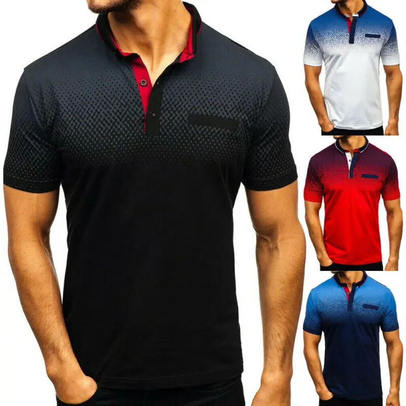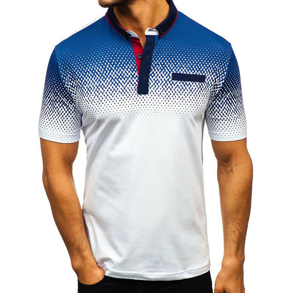 Футболка мужская с отложным воротником, Классическая Повседневная Мягкая рубашка с коротким рукавом, в стиле пэчворк, топ с отложным воротником, лето