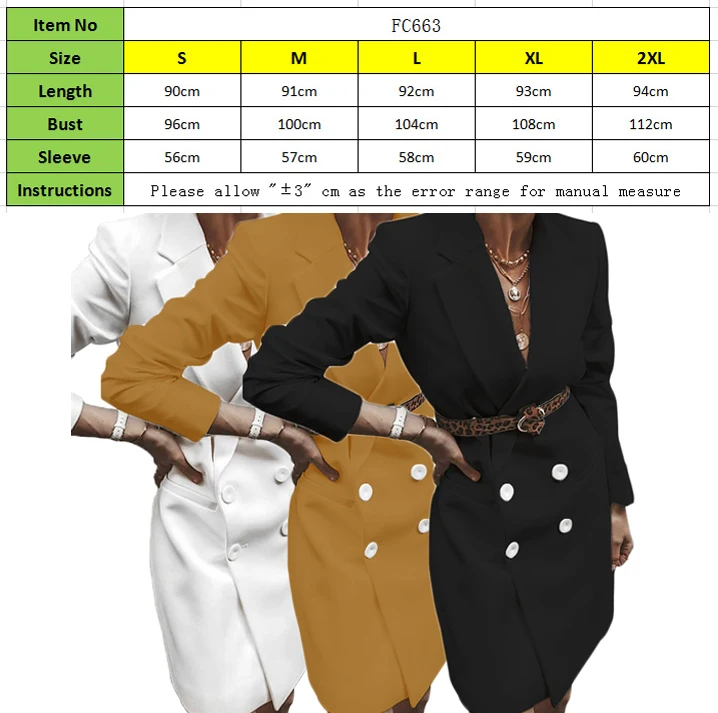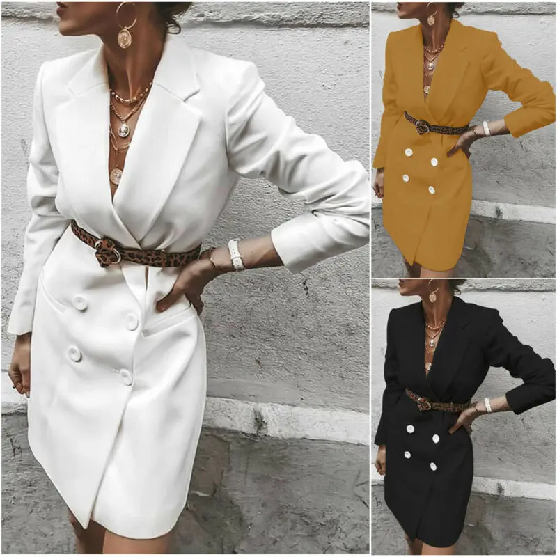 Женское Деловое платье-пиджак, двубортное мини-платье с длинным рукавом и лацканами, для офиса
