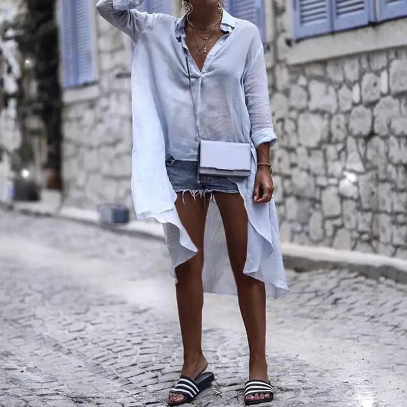 ItemAsymmetrical Hem Long Tops Tunic Chemiser Femme