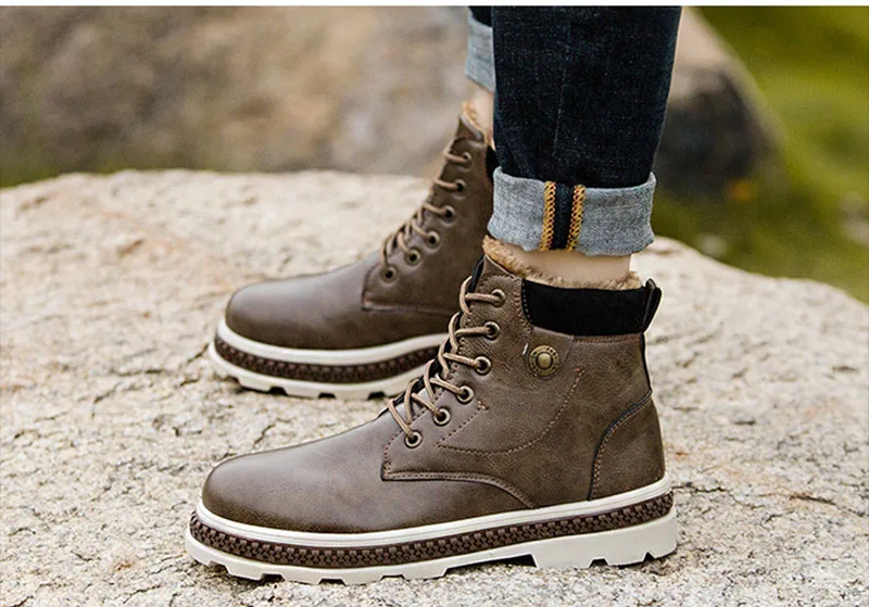 Зимние ботинки для мужчин; зимние ботинки; ботильоны из натуральной кожи; Водонепроницаемая Рабочая зимняя обувь; повседневная мужская обувь; botas hombre