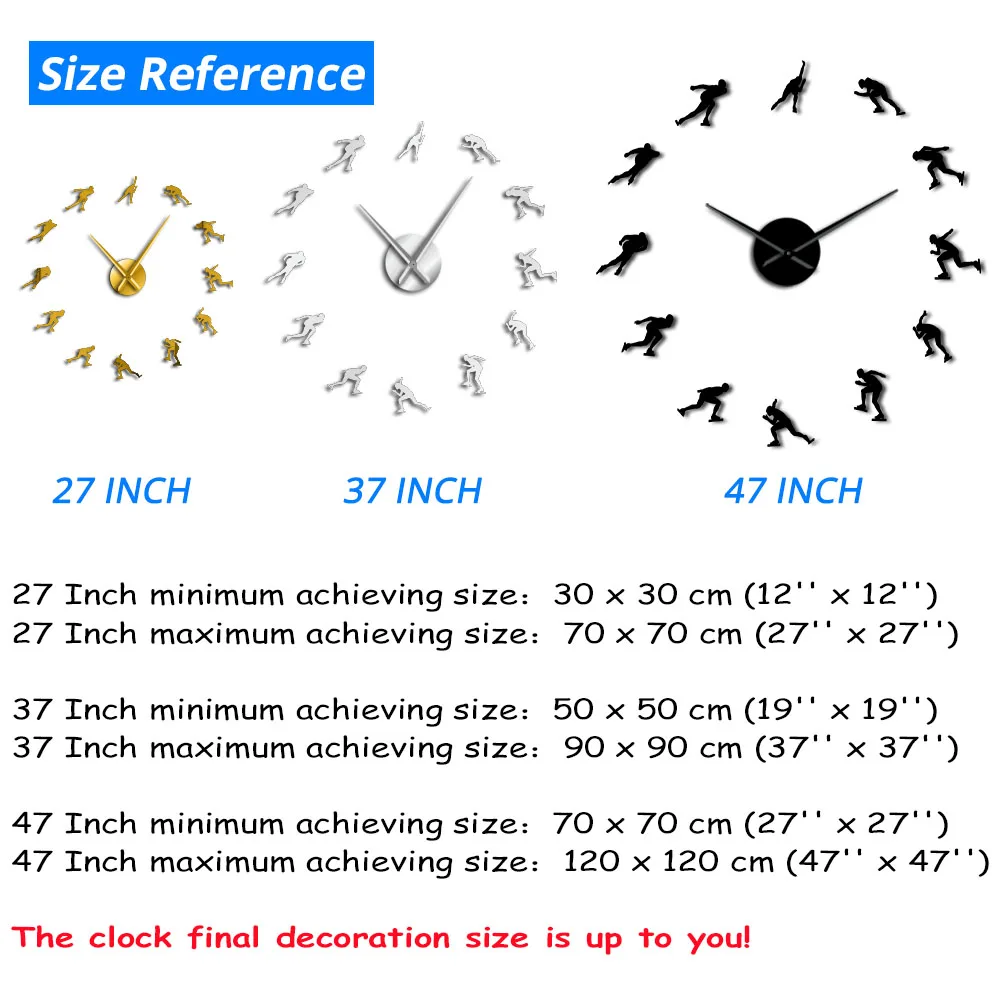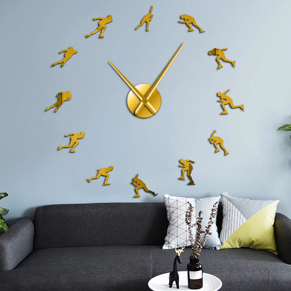 Зимние спортивные Зеркальные Стикеры для катания на коньках, большие бесшумные настенные часы, скоростной Скейтер, спортивные художественные Декорации для комнаты, скоростные роликовые часы DIY