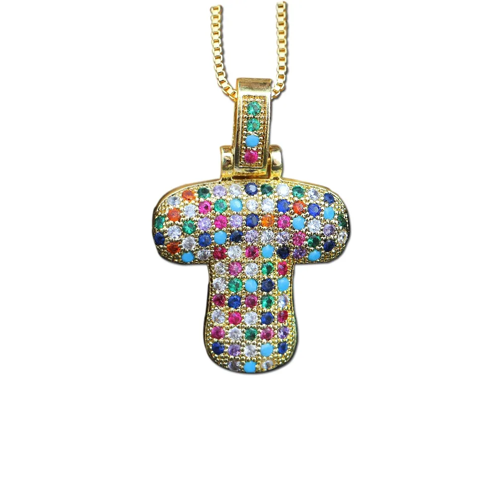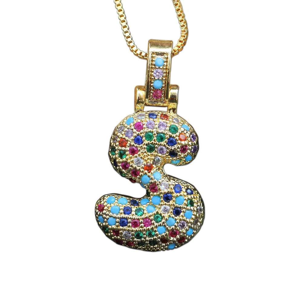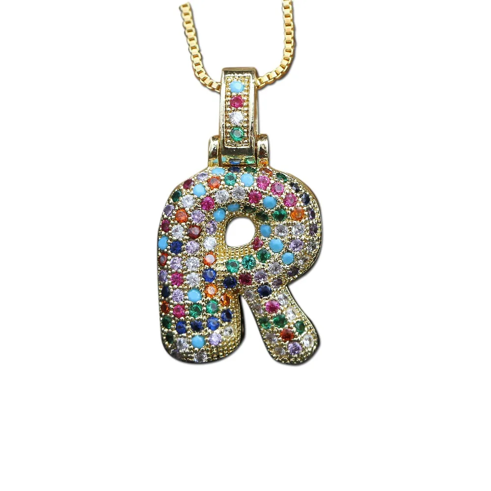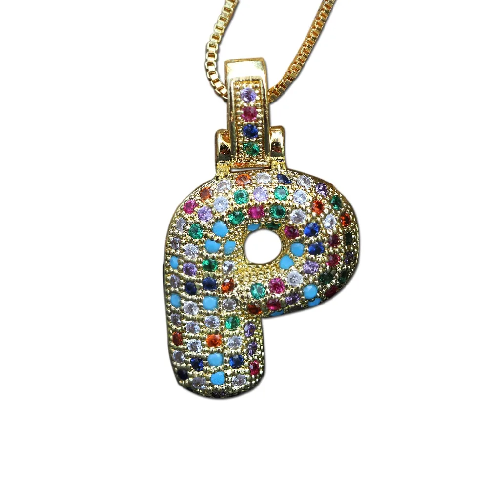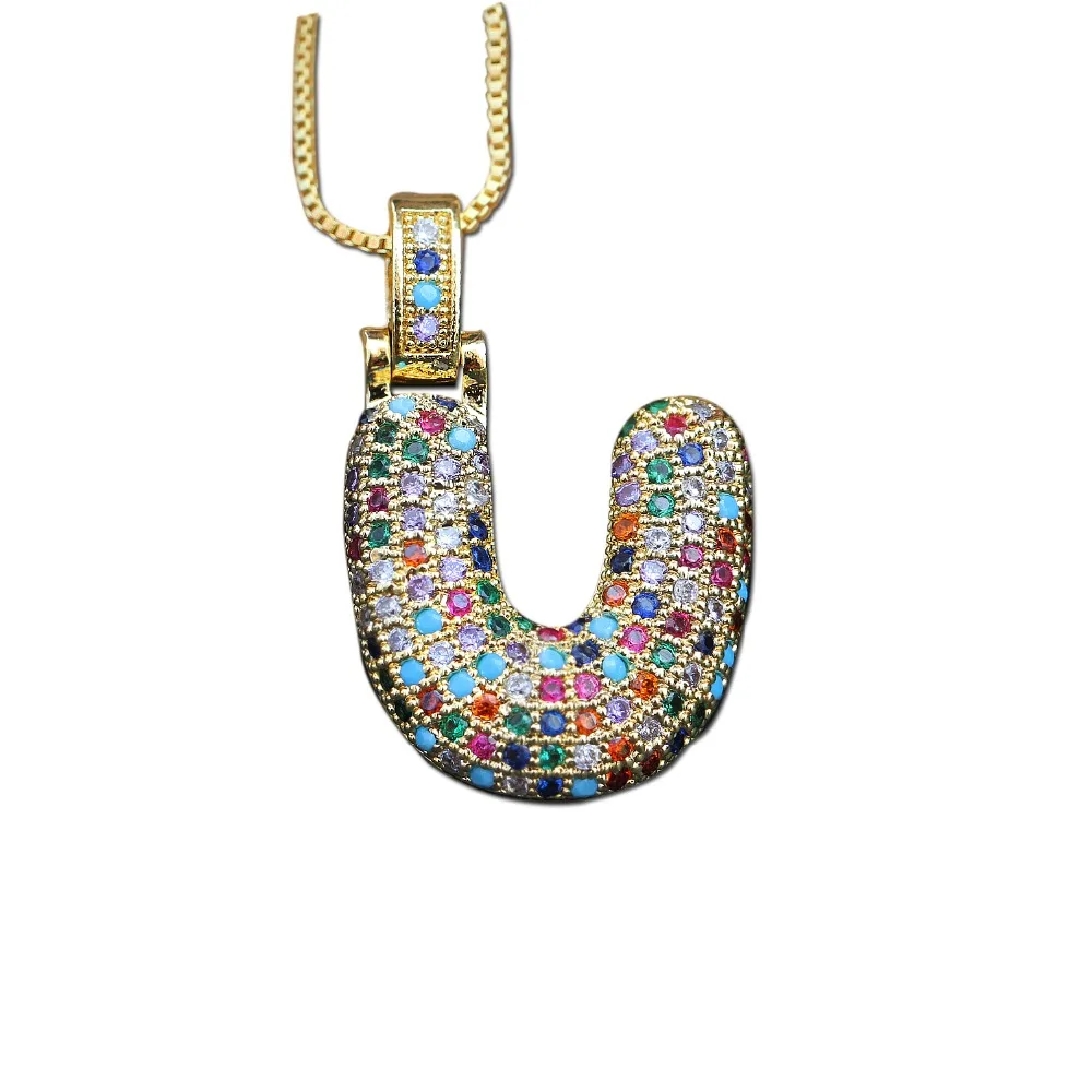 Модная коллекция в стиле хип-хоп, Радужный цвет, CZ Кристалл, кулон, ожерелье, золотой CZ micro shop, ювелирные изделия с буквами для женщин, ювелирные изделия