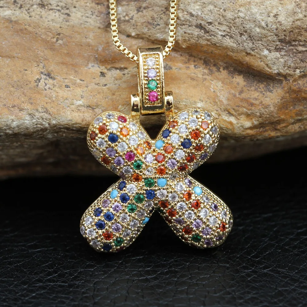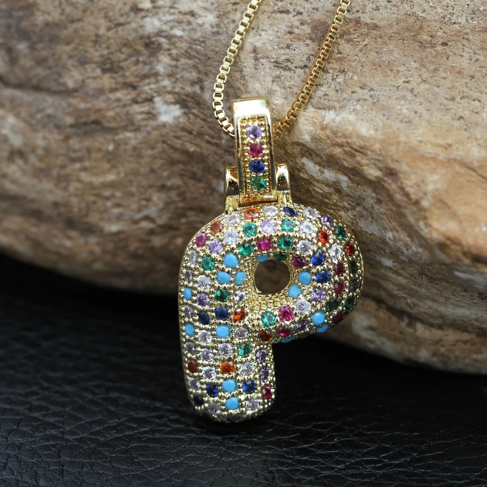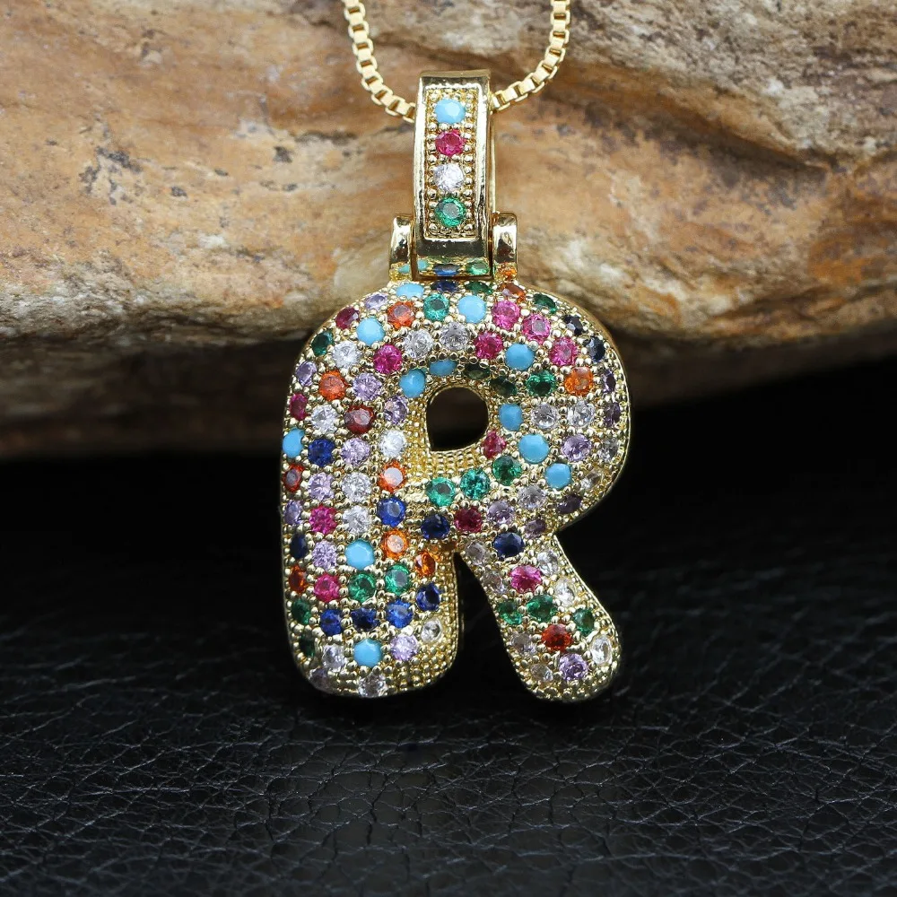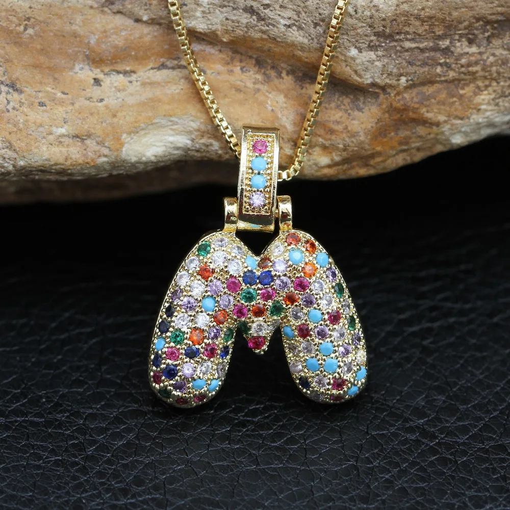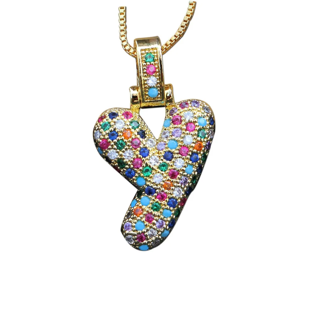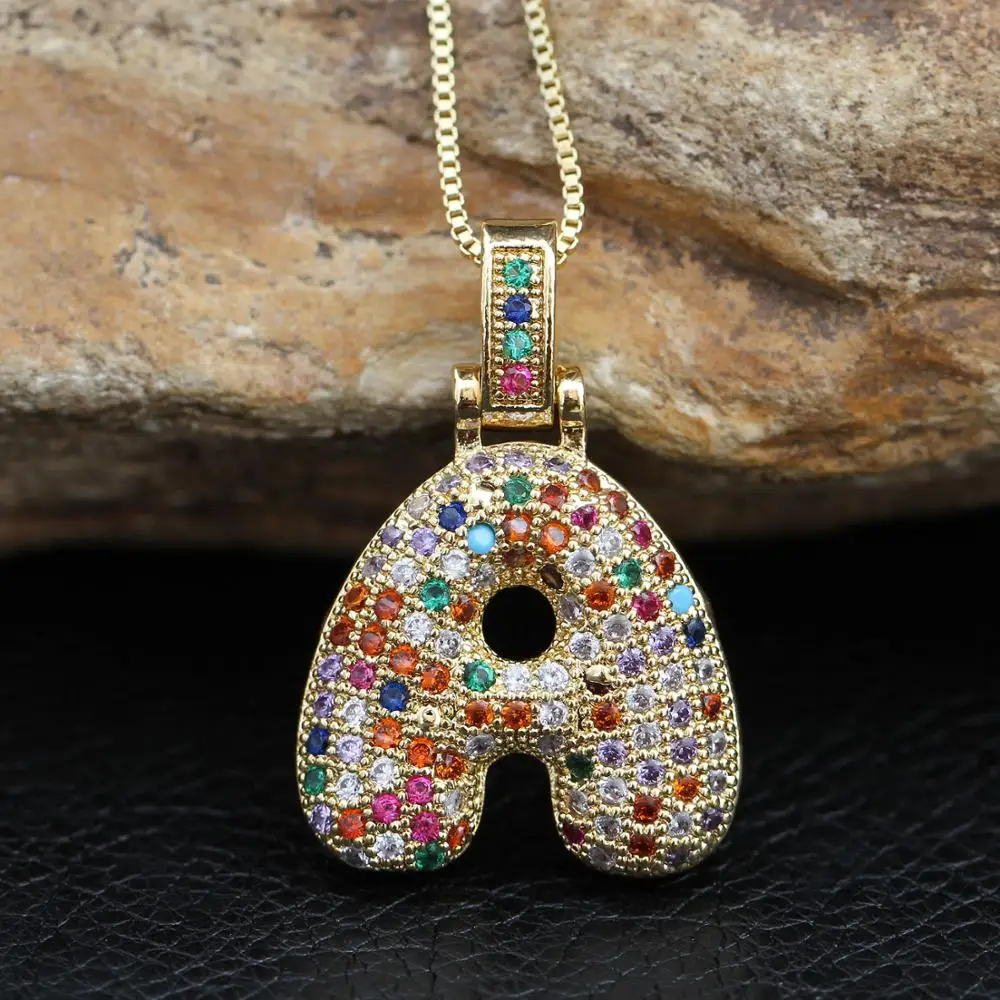 Модная коллекция в стиле хип-хоп, Радужный цвет, CZ Кристалл, кулон, ожерелье, золотой CZ micro shop, ювелирные изделия с буквами для женщин, ювелирные изделия