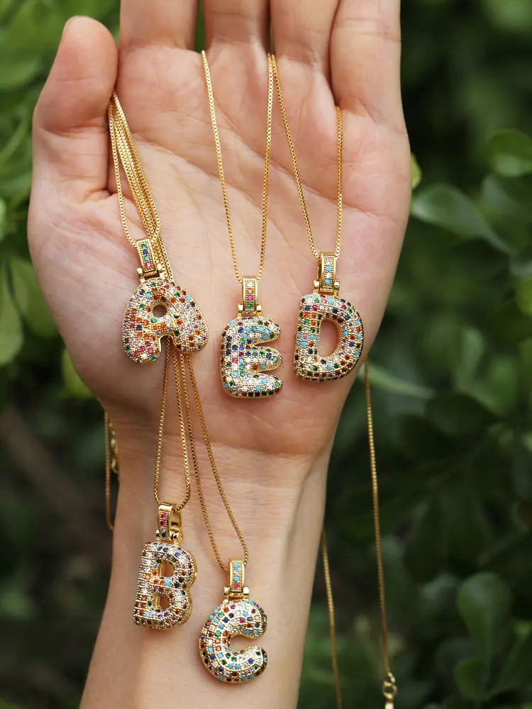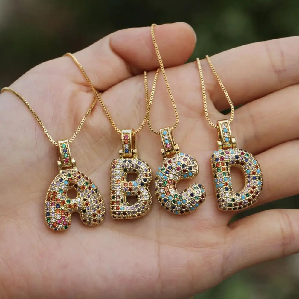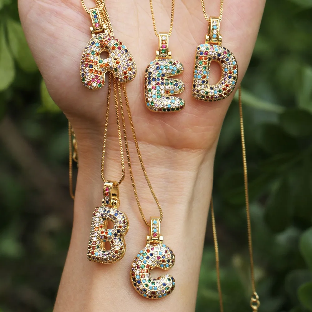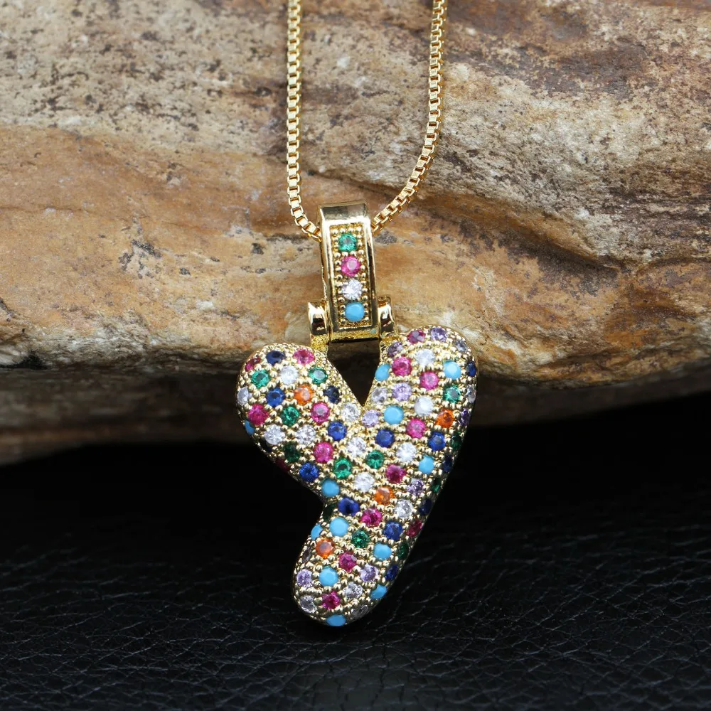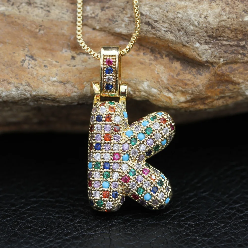Модная коллекция в стиле хип-хоп, Радужный цвет, CZ Кристалл, кулон, ожерелье, золотой CZ micro shop, ювелирные изделия с буквами для женщин, ювелирные изделия