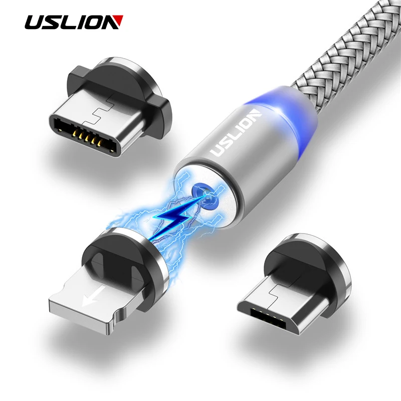Магнитный зарядный кабель USLION, Micro USBType CLightning, 12 м