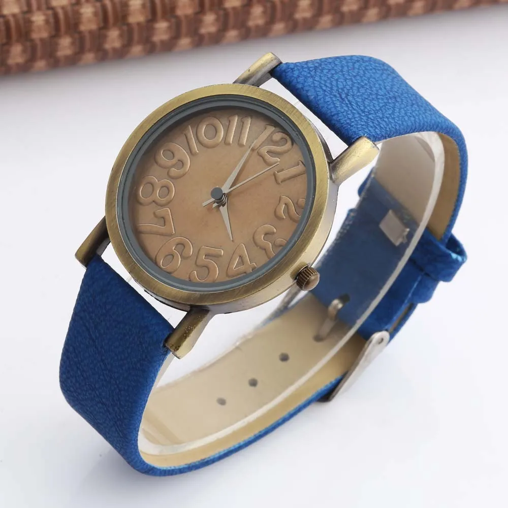 Часы женские кварцевые в винтажном стиле с кожаным ремешком