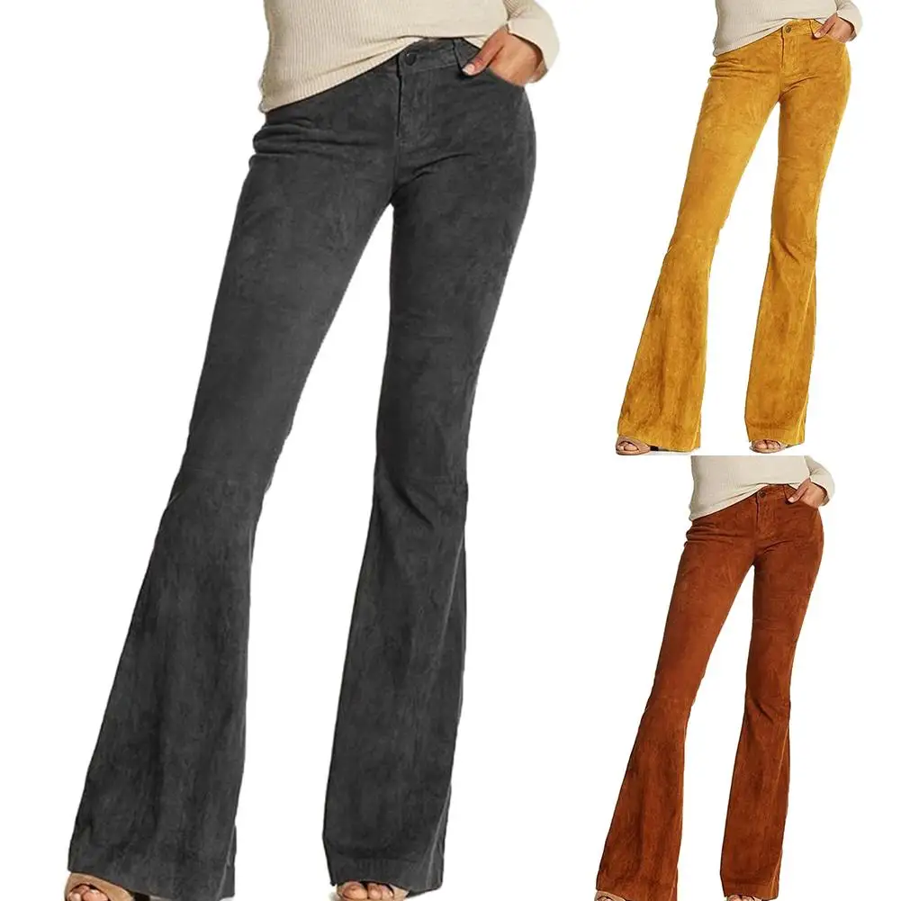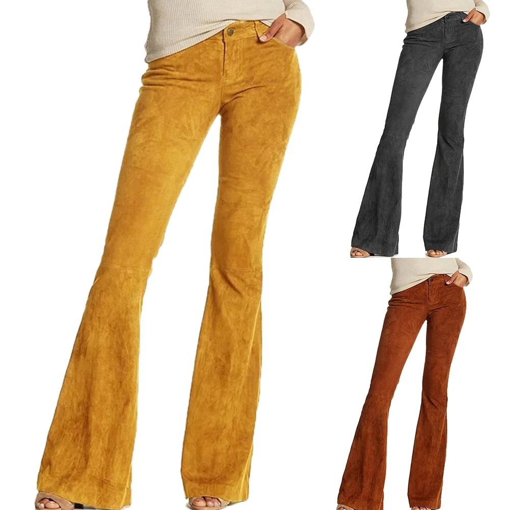 Брюки женские с завышенной талией, винтажные повседневные Широкие штаны в стиле ретро, модные брюки-клеш из искусственной замши, S-5XL, 2021