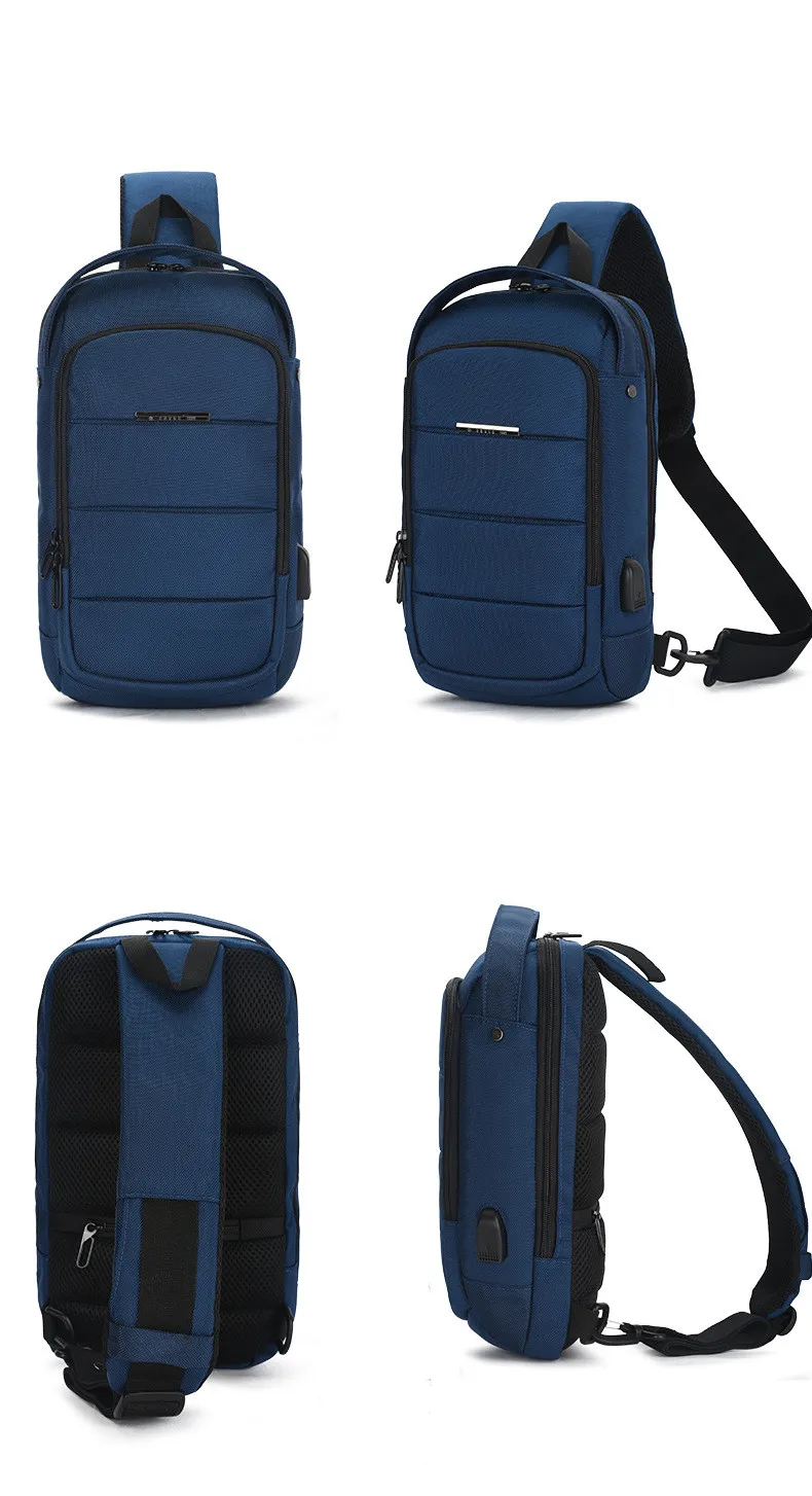 Повседневная мужская нагрудная сумка OZUKO, водонепроницаемые сумки через плечо, с USB-зарядкой, вместительный мессенджер из ткани Оксфорд, 2019