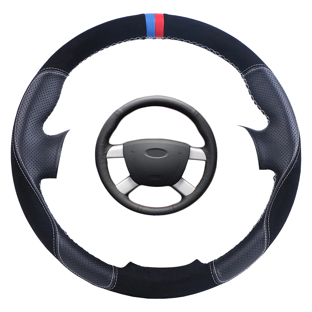 Оплетка рулевого управления для Ford Kuga чехол рулевого колеса автомобиля-2008, Focus 2, 2011-2005, 2011-C-MAX, замша, кожа