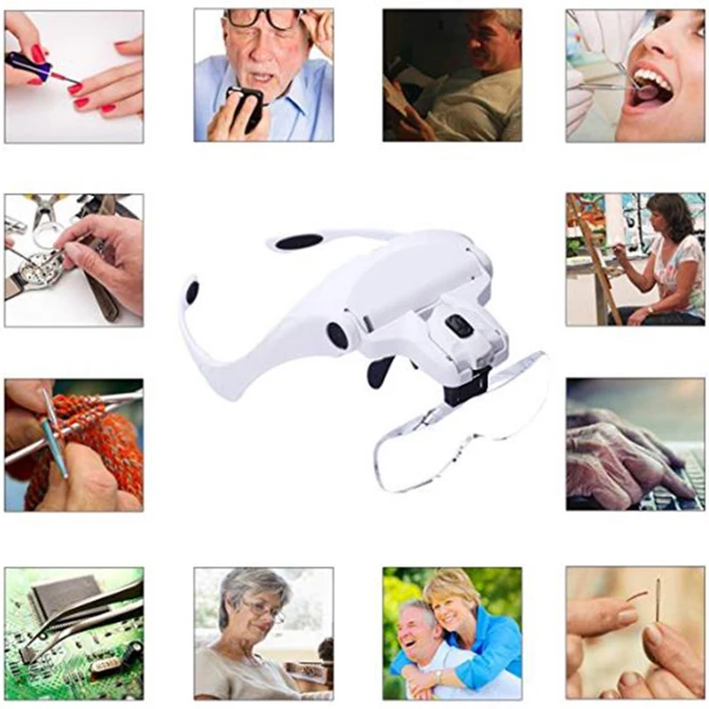 Микроблейдинг оголовье увеличение очки увеличительные очки с светодиодный светильник и 5 набор линз для вышивки Перманентный макияж