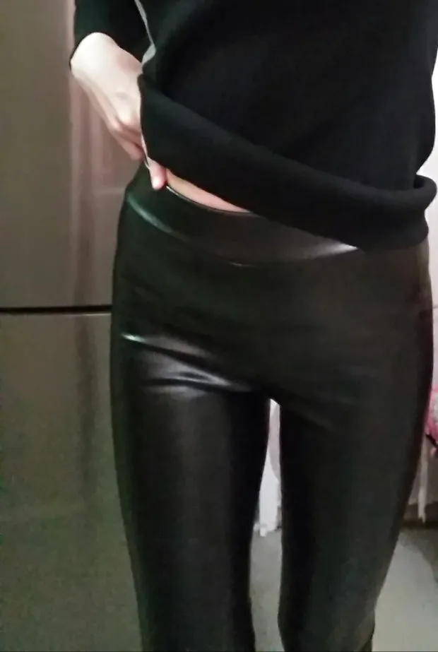 Хорошие тёплые плотные штаны, налезают даже на жопэ российского 50-52 размера. Дешевого блеска как на фото нет, матовый блеск, как у мягкой натуральной кожи, выглядят очень прилично. Есть трикотажные штрипки, чтоб не задиралась штанина. Сшито аккуратно, нитки не торчат. Вонь кошачьей ссанины ушла после стирки. Спасибо продавцу за хороший товар