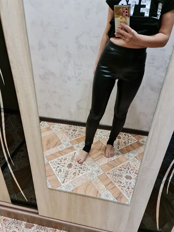 Доставка быстрая! Подошли идеально на рост 171см, ОБ 105. Удобный пришитый «носок» не даёт легинсам задираться. Кожа не тонкая, не шуршащая, флис внутри держит тепло. Из минусов небольшой блеск кожи, но не критичный. Рекомендую и вещь и продавца!