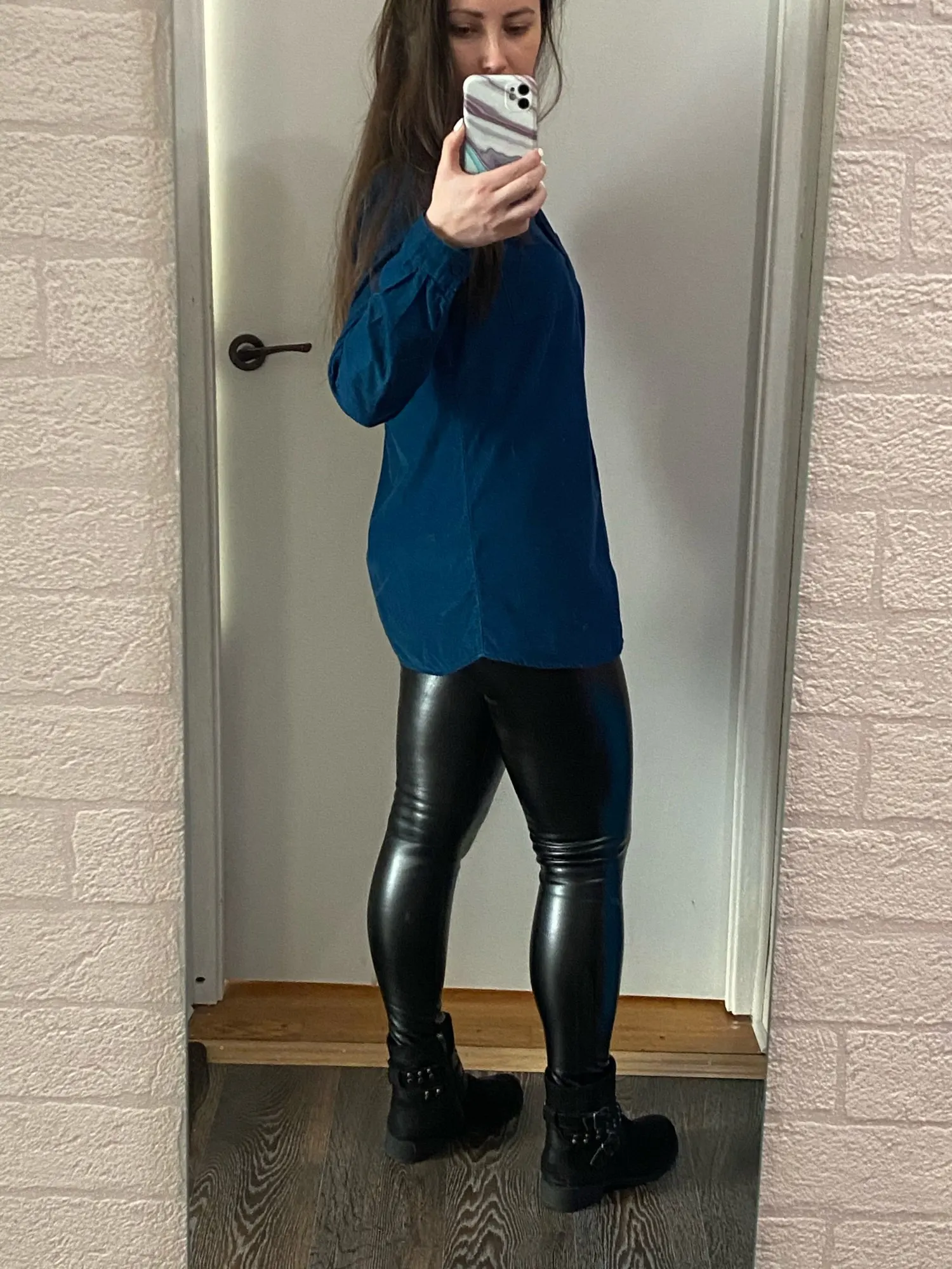 Леггинсы просто супер сидят на фигуре, даже на моей попе ОБ 104 отлично, чуть утеплённые. Есть не большой запах.