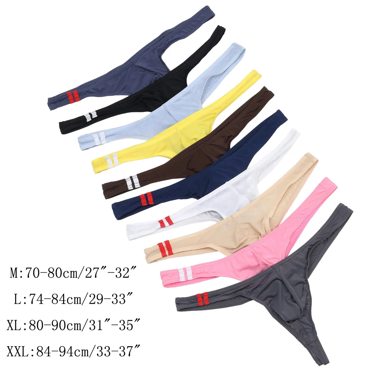 Мужские сексуальные стринги с низкой талией, ультратонкое нижнее белье из вискозы, выпуклый U-образный выпуклый мешочек, однотонные удобные трусы с низкой посадкой в двойную полоску