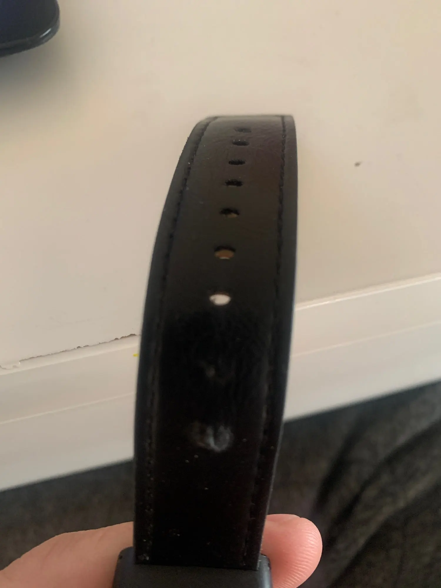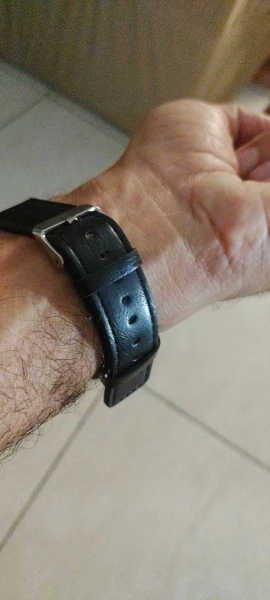 Ремешок выглядит как кожа, но он для большого запястья, поэтому мне пришлось сделать отверстия, чтобы адаптировать его к моему запястью, что нормально. Пластик, куда идет часы, кажется очень хрупким, и я не думаю, что это продлится долго...
