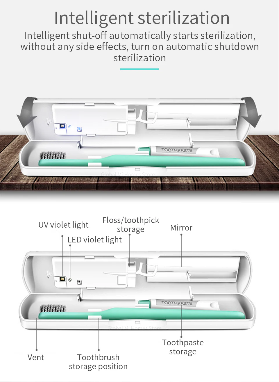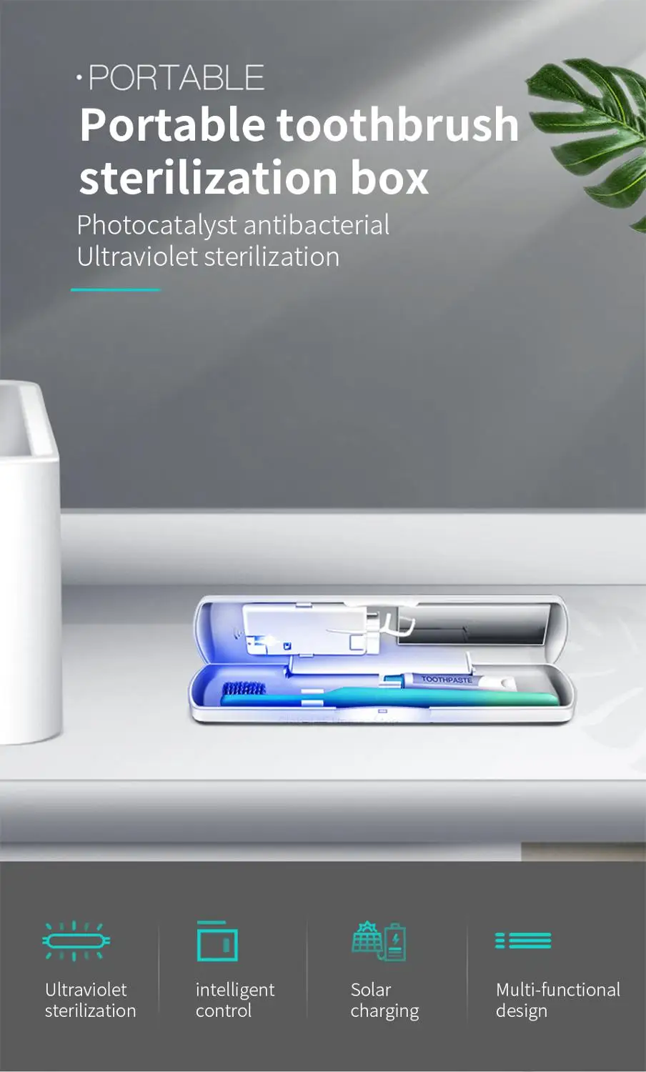Портативная дорожная ультрафиолетовая дезинфекционная зубная щетка Oakmoss UVC со светодиодной подсветкой, стерилизатор с зарядкой от солнечной энергии