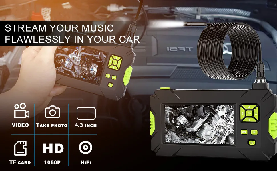 Этот эндоскоп является удобным и практичным устройством в вашей повседневной жизни, автомобильный эндоскоп может широко использоваться для автомобильного осмотра, осмотра трубопровода, осмотра кондиционера и т. Д. Эндоскопическая камера проста и удобна в эксплуатации с дисплеем с большим экраном 4,3 дюйма.