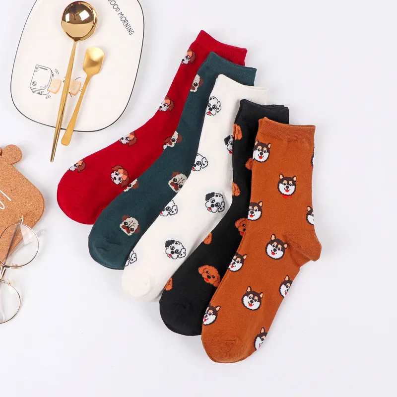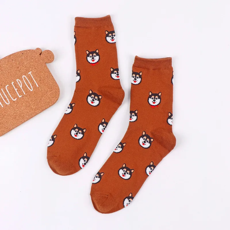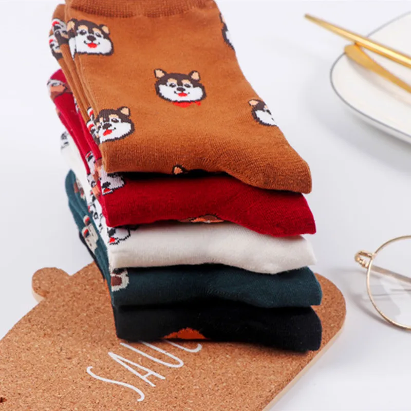 2019 новые модные женские носки Kawai из чесаного хлопка с мультяшным рисунком, забавные носки для девушек, собаки Сиба-ину, корги, милые Повседневные Носки с рисунком животных