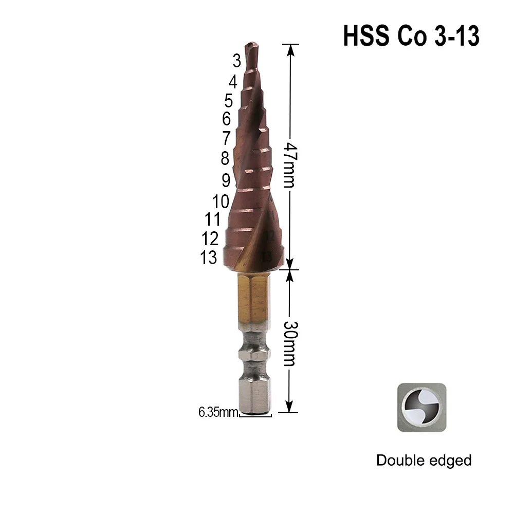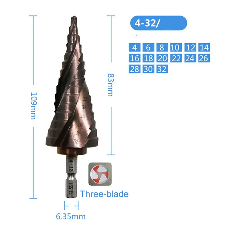 ZJCOSTOL HSS-CO ступенчатое сверло M35, кобальтовый шестигранный хвостовик, спиральная канавка, металлическое Коническое ступенчатое сверло, пила, фреза Furadeira