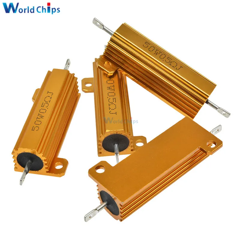 Резистор с проволочной обмоткой 5% 0,1r 0,5r 1R 1.5R 2R 8R 10R 20R 100R 1 кОм, алюминиевый корпус, 50 Вт, алюминиевый силовой металлический корпус