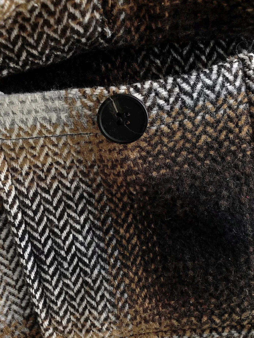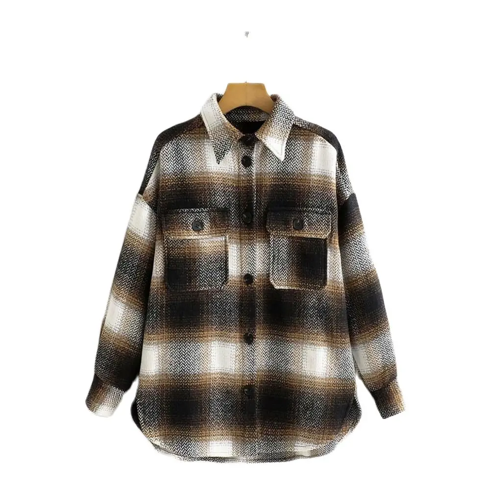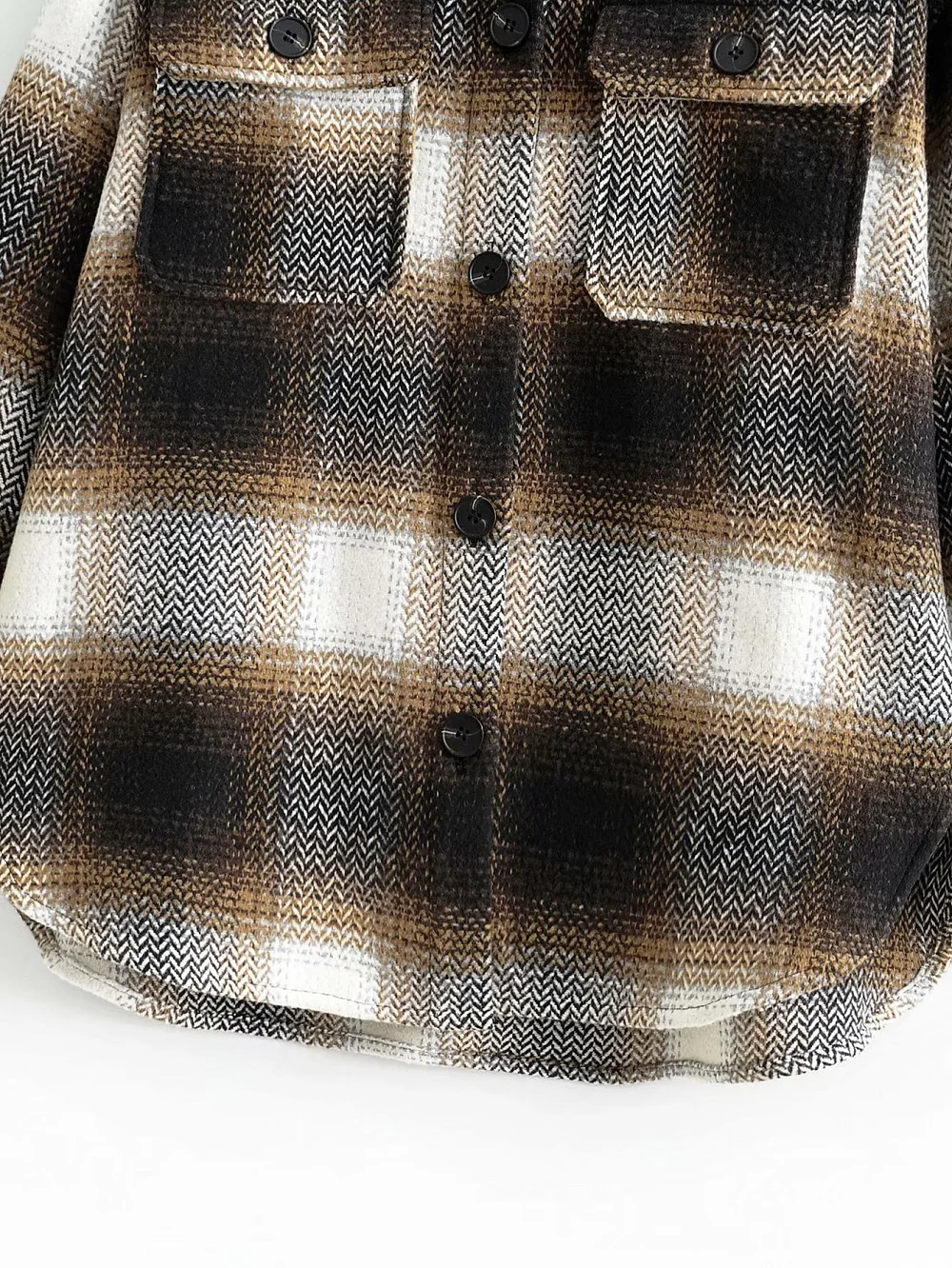Женская клетчатая куртка, винтажная куртка контрастных цветов с карманами и отложным воротником, Повседневная Уличная одежда для девочек