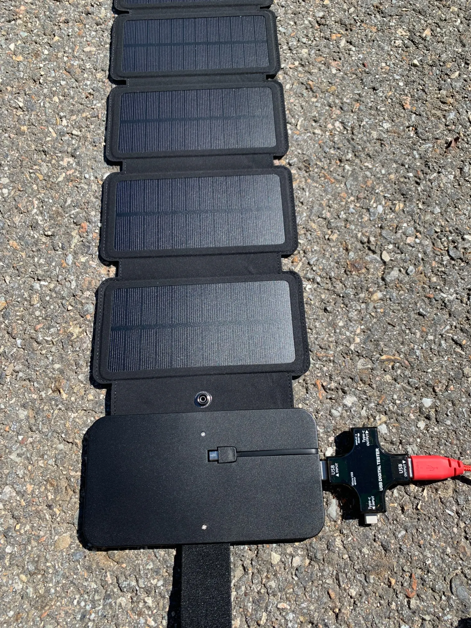 Great little solar charging unit! The unit is elegant and well made. It is only slightly larger than a normal size phone when folded up so, it is very portable. I was able to charge my phone from 1% to 100% in four hours! I bought the 5 panel unit which is more than enough. I LOVE IT!!!