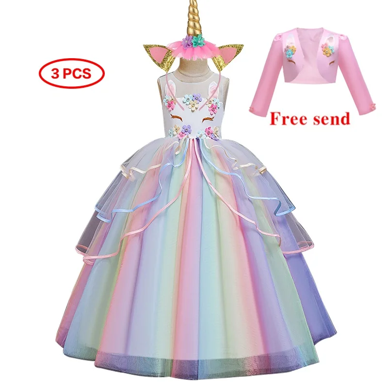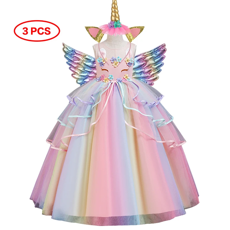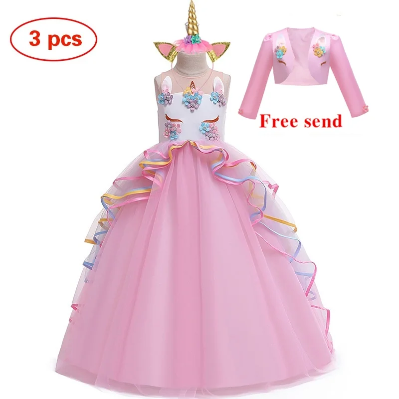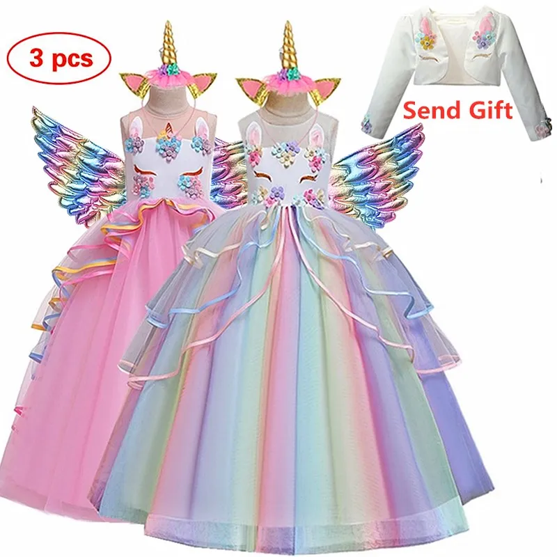 Розничная продажа, новое фэнтезийное платье для девочек с единорогом, вечерние платья для подростков, Сетчатое элегантное детское платье принцессы без рукавов, детская одежда