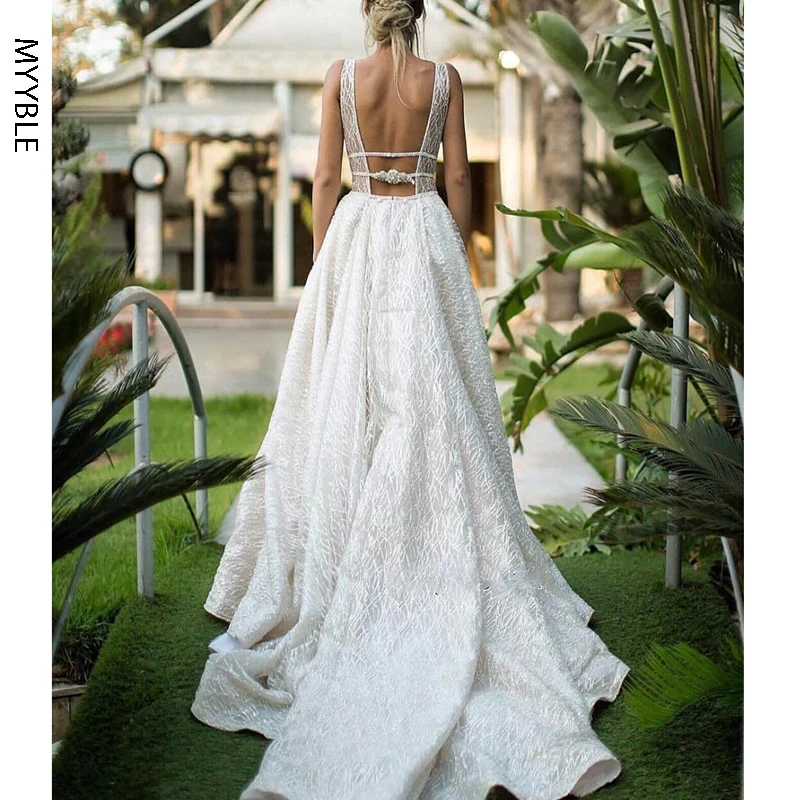 Реальное фото MYYBLE, богемное современное свадебное платье с откры...