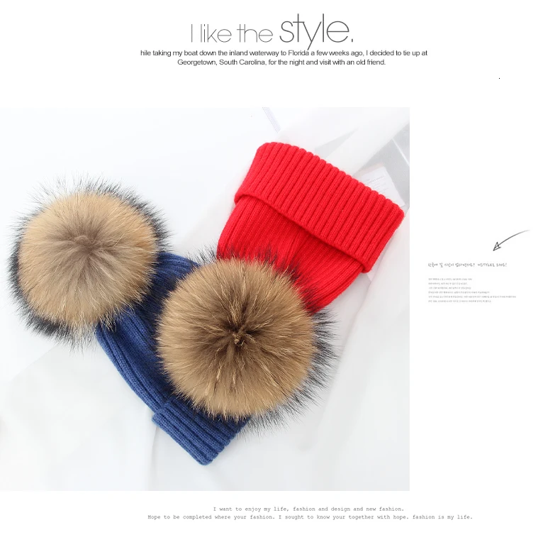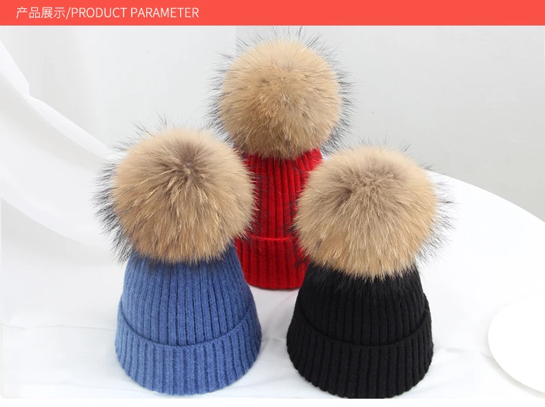 JIANGXIHUITIAN, простая шапка с помпонами из натурального меха, зимняя женская шапка, шапка для девочки, вязаные шапочки, брендовая новая Толстая Женская шапка