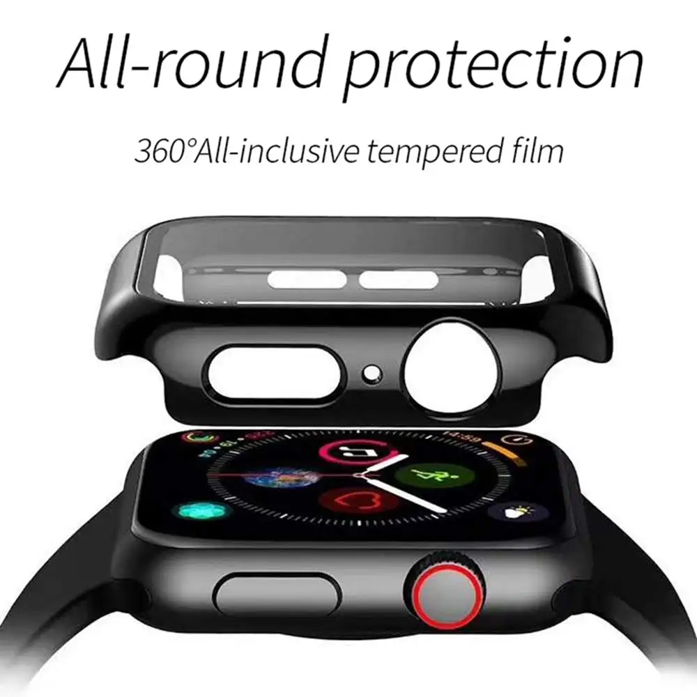 Закаленное стекло + чехол для Apple Watch 38 мм, 42 мм, 40 мм, 44 мм, серия 4, 5, 6, SE, защита экрана с закругленными краями