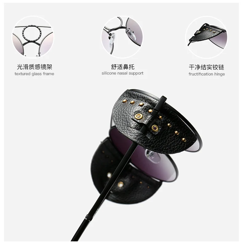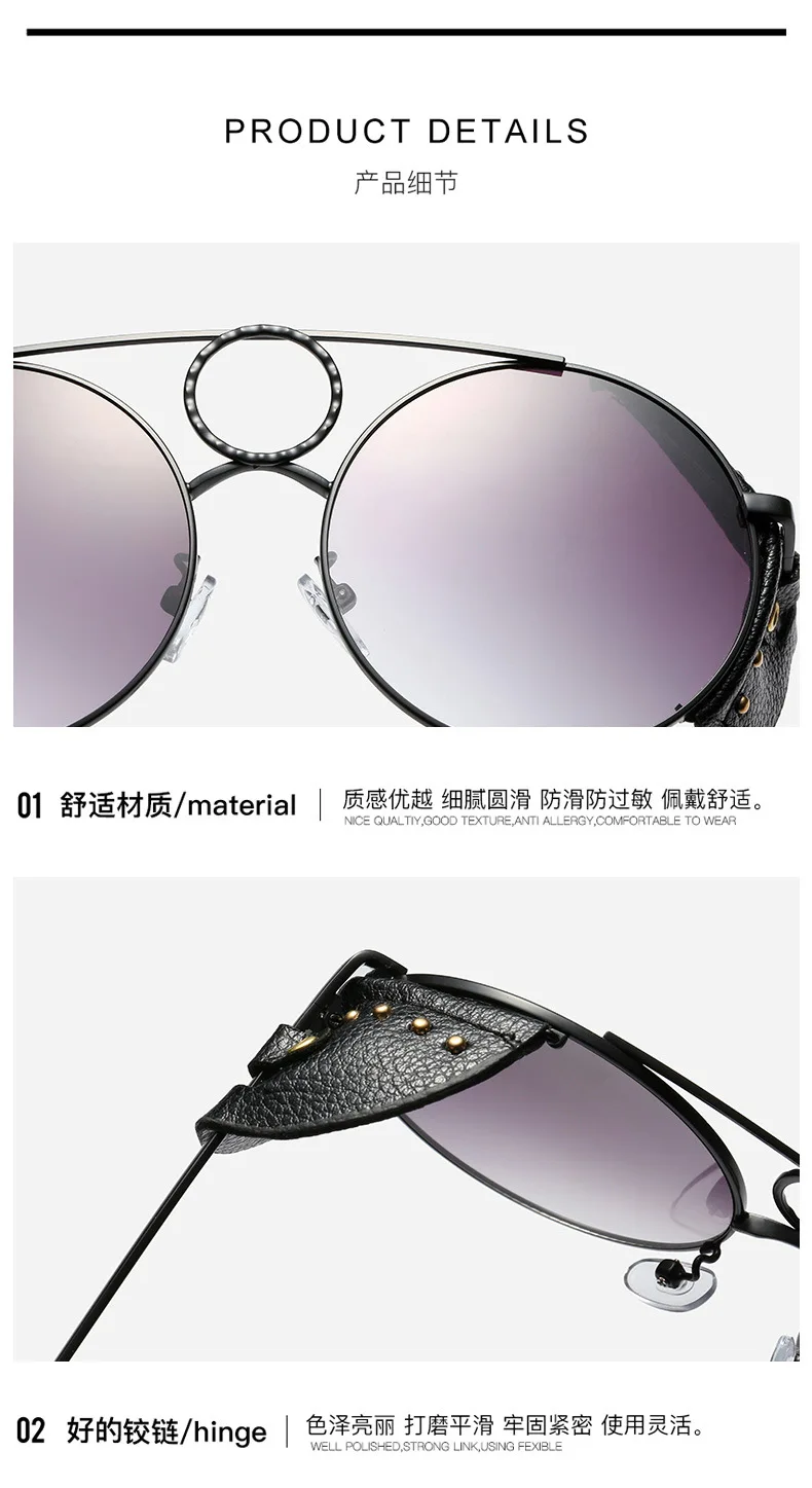 Женские круглые солнцезащитные очки в стиле стимпанк, ювелирные изделия из кожи с градиентными линзами, 95535, 2020