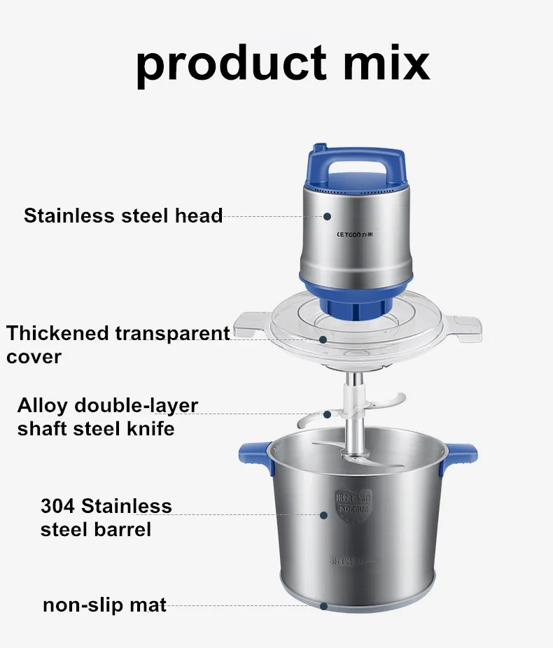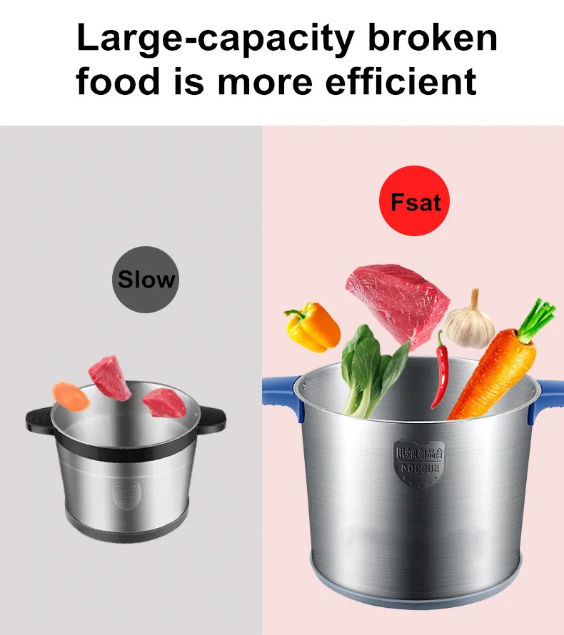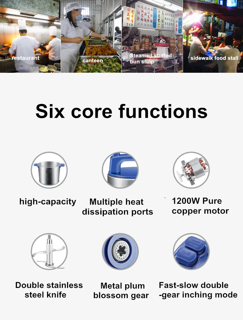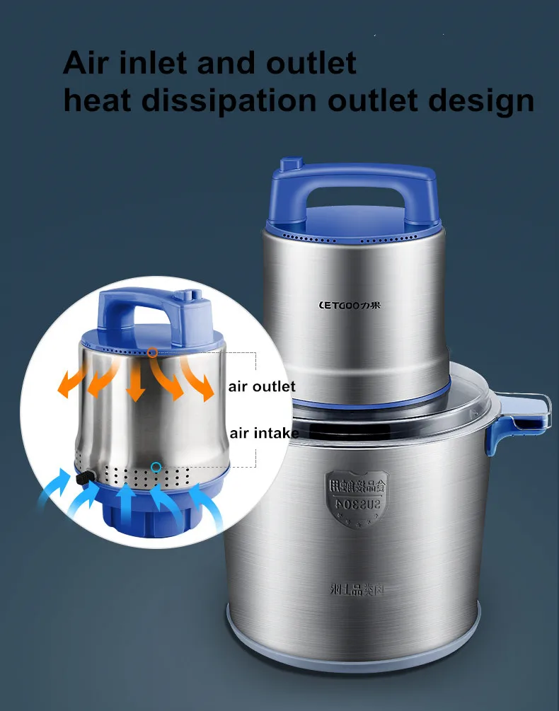 Коммерческая Мясорубка 12L, 1200 Вт, высокомощный блендер для мяса, домашний электрический блендер из нержавеющей стали для перца и чеснока