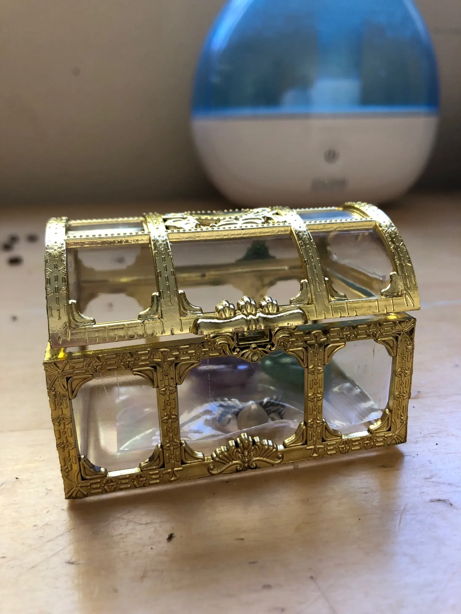 Маленькая шкатулка, идеальна для детских сокровищ. Пришла с наполовину отсоединённй крышкой, хоть и была хорошо упакована. Но Всё починилось без заметных следов.