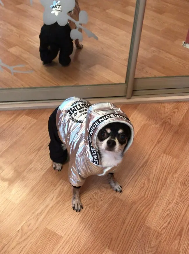 Классный комбинезон! Заказала M для чихуахуа 2,9 кг., подошёл! Пёс доволен!!!