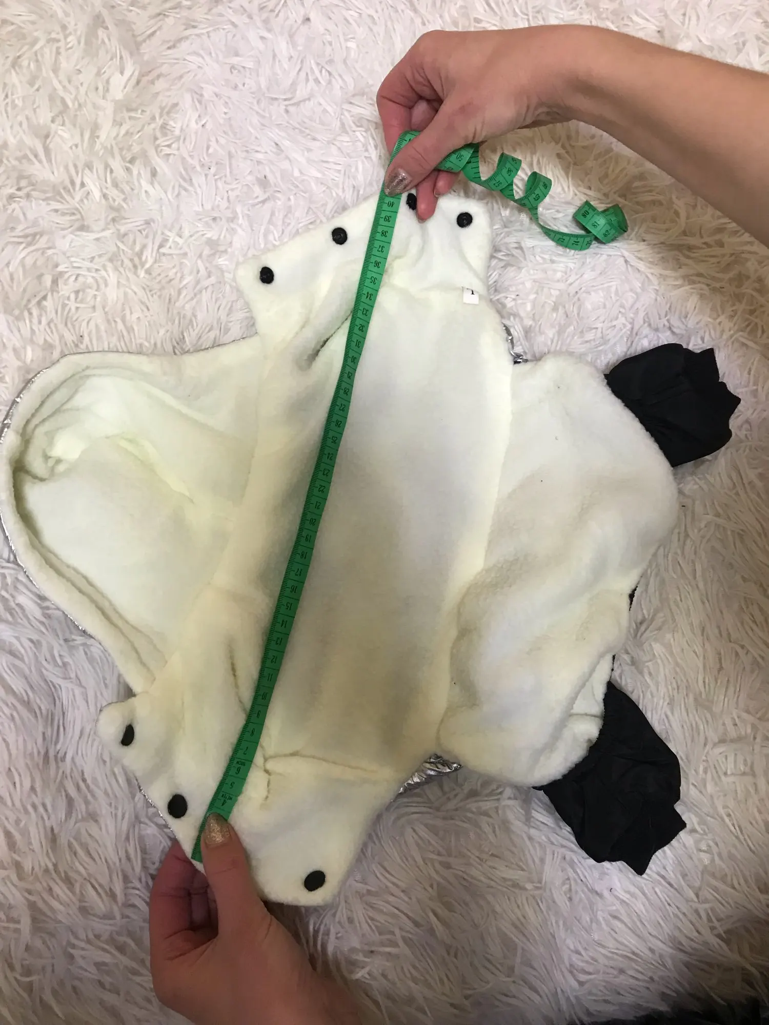 заказ от 4 января получила 28января . р.М по спине 25 см на чиха 1,5 кг вполне норм . думала , что подкладка из меха, но оказался флис(фото2). живот сильно открыт(фото 5) .костюм осень-весна. если носить собаку в сумке или возить в авто, то можно и зимой одевать этот костюм на не сильный морозец. в принципе я покупкой довольна. костюм не дорогой и стоит своих денег.