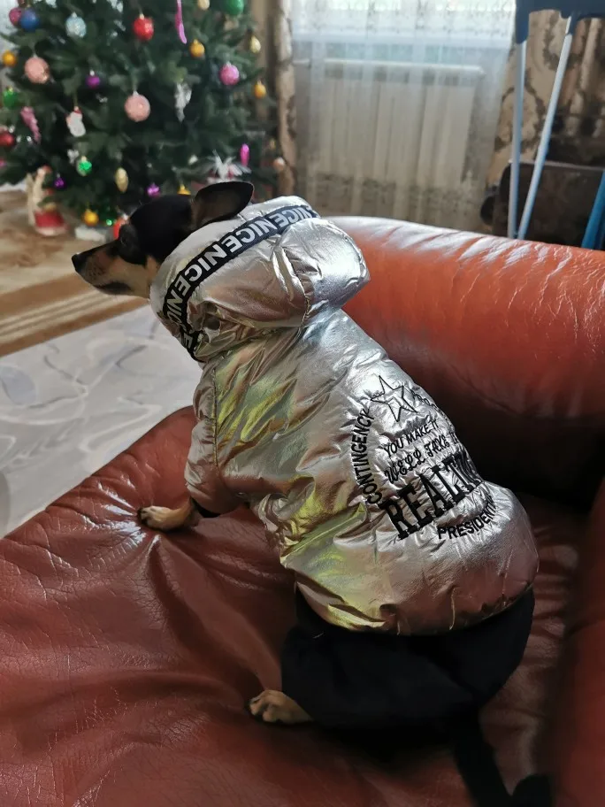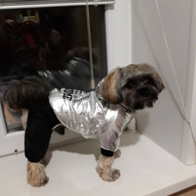 Заказала курточку для своей любимой собаки. Арчику очень понравилась эта кратка как и мне. Очень хорошо сшито и качественно. Собачка породы Йорк весит 2 кг 900 грамм для него курточку взяла размером М и не ошиблась. (Для кобелька главное чтоб курточка не закрывала пипитьку иначе будет постоянно мокрая куртка. !!!!!) Очень хорошо села на него и круто смотрится. Спасибо большое продавцу. Рекомендую всем))))