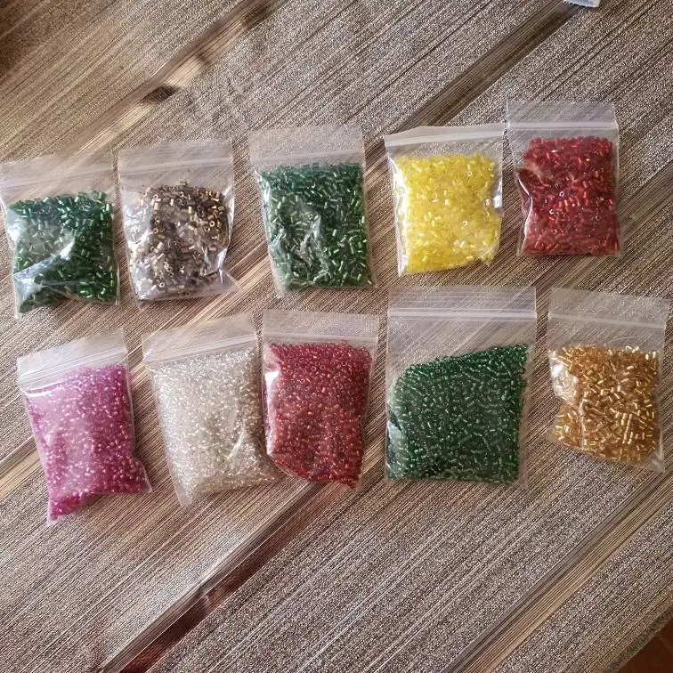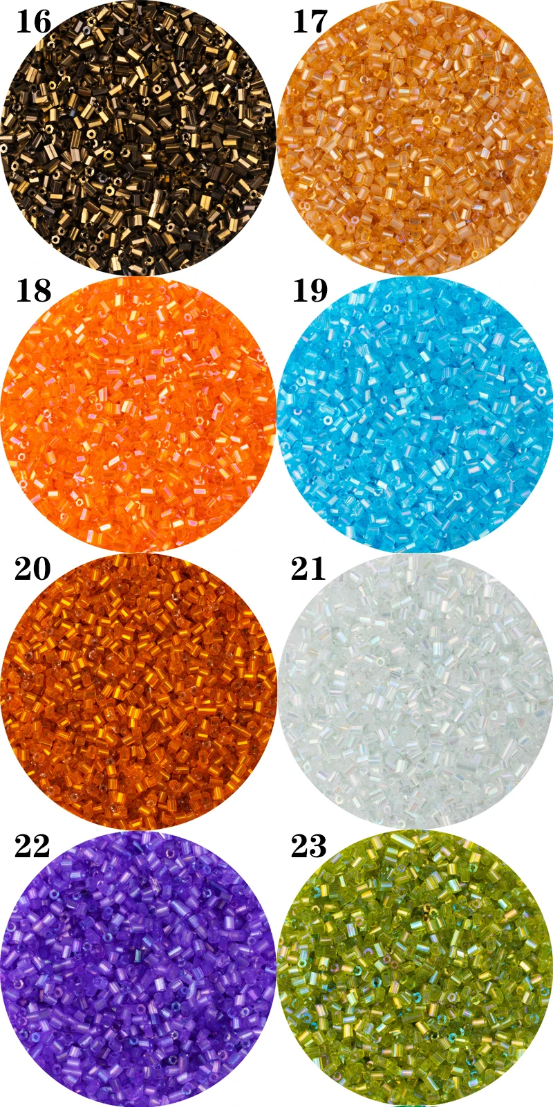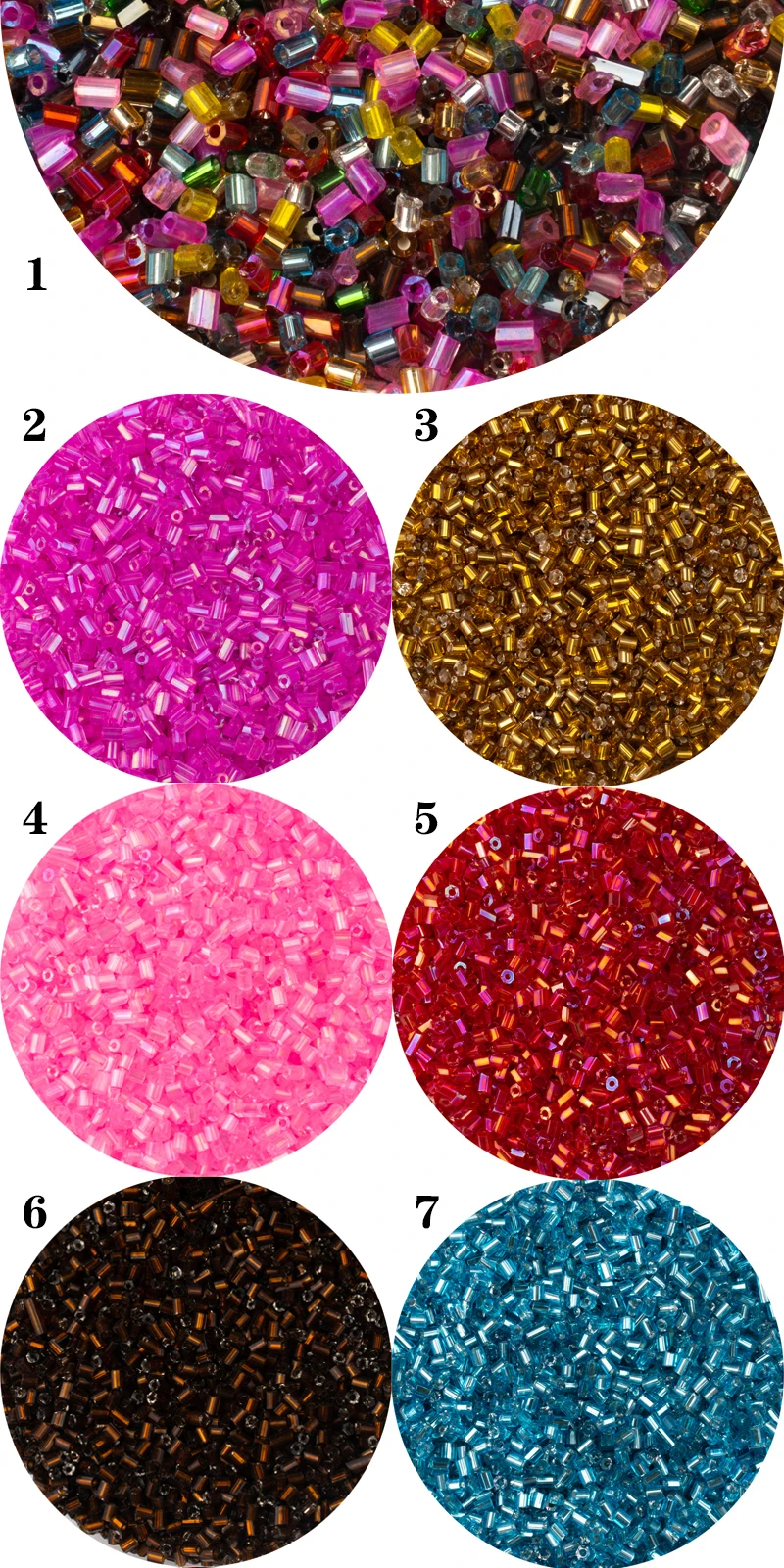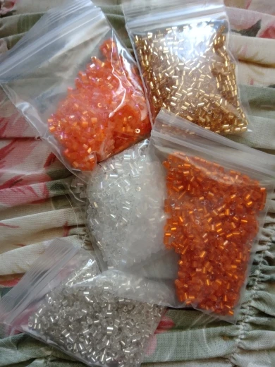 Очень красивые цвета, особенно фиолетовый и прозрачные АБ. Но! Я успела попробовать только светло-розовый, и могу сказать, что очень много дефектных бусин: длина разная, срез разный (и прямой, и косой), много битых бусин и осколков. Заказывать больше не буду.