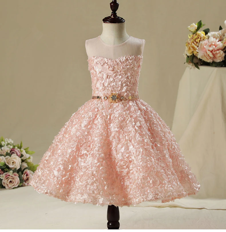 Роскошное розовое платье с цветами для девочек на свадьбу, длинное ...