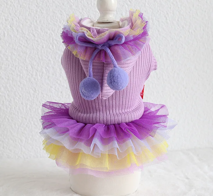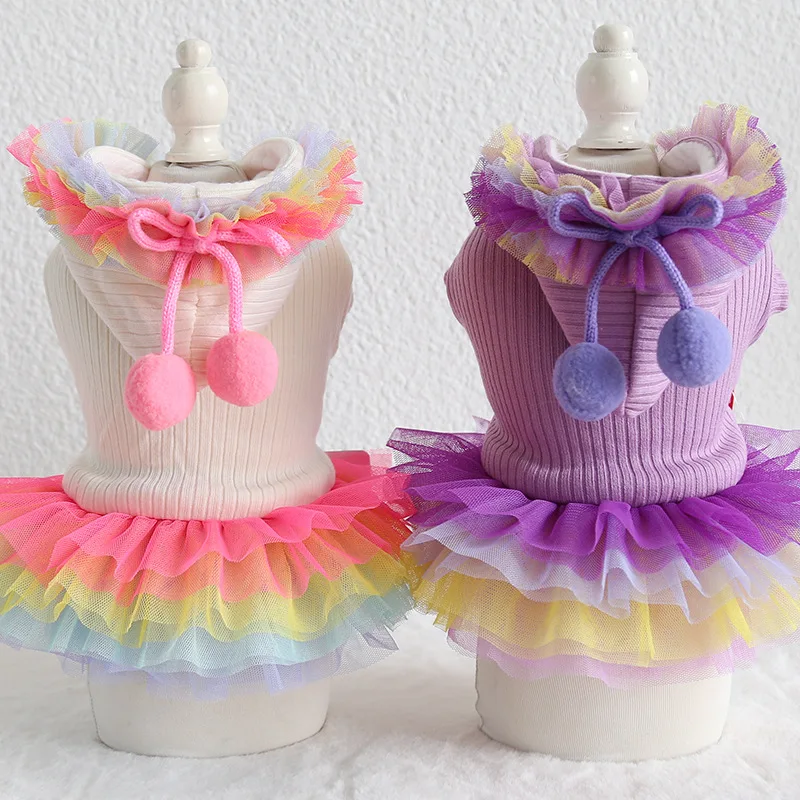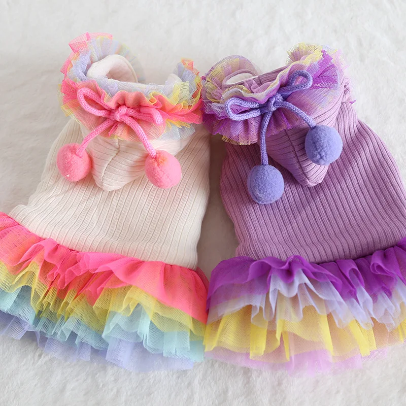 Радужное кружевное хлопковое платье для собак, одежда для домашних питомцев, зимняя теплая рубашка для собак, толстые пальто, одежда для собак, кошек, Йорков, мальтеса